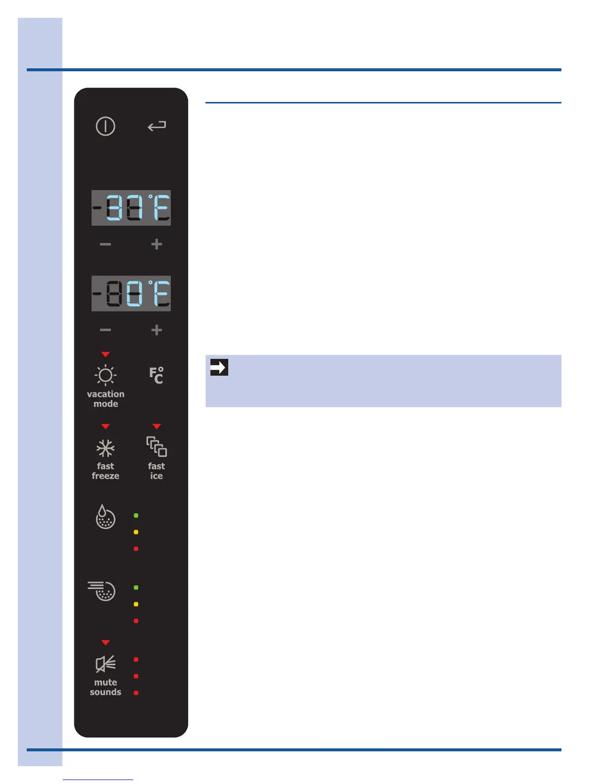 refrigerator. It also turns off the ice maker. The temperature displays will read OFF.