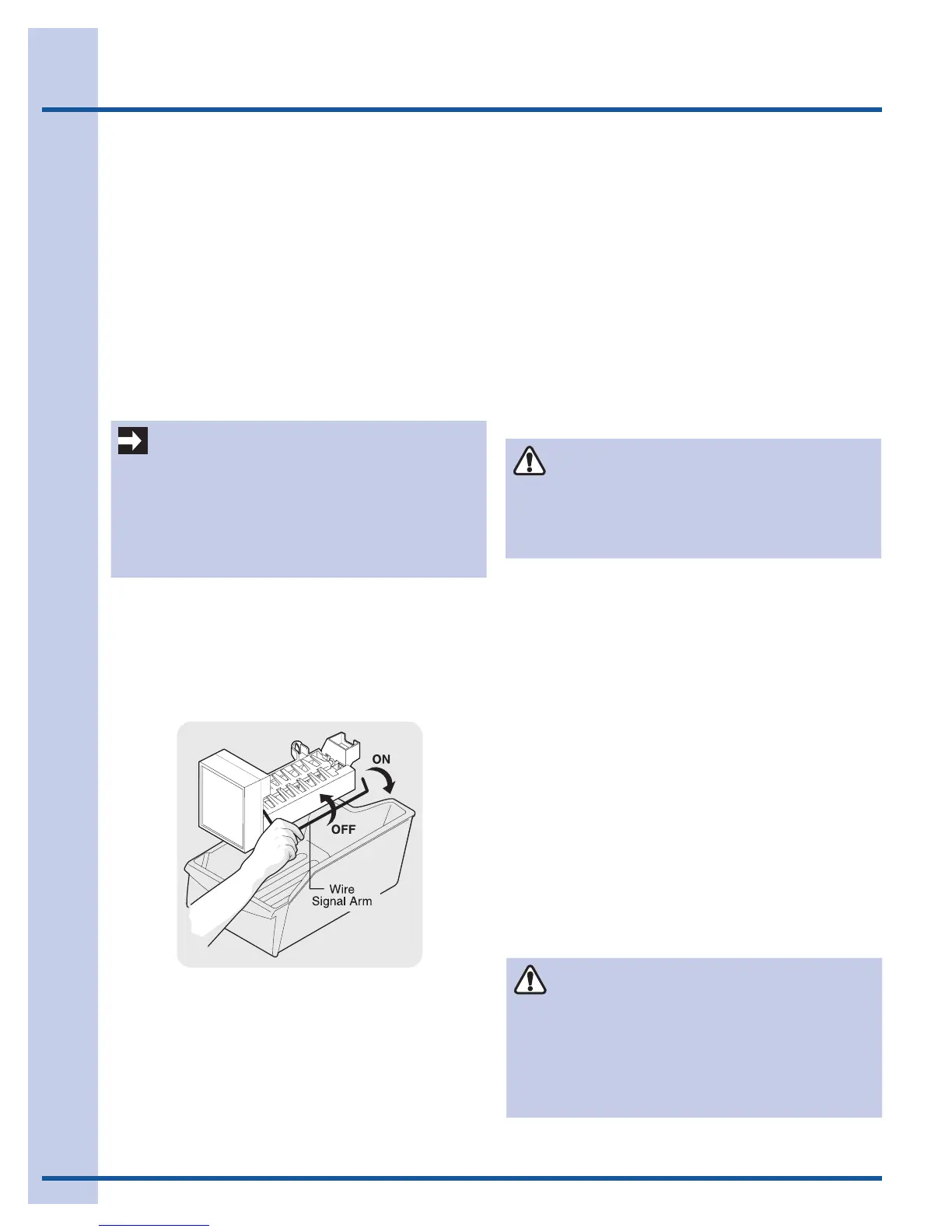 arm to turn the ice maker OFF and lower the wire signal