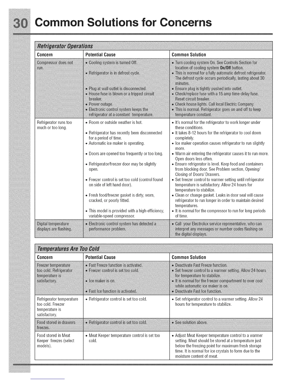 Refrigeratortemperature • Refrigeratorcontrol is set too cold. • set refrigeratorcontrolto a warmersetting.Allow24