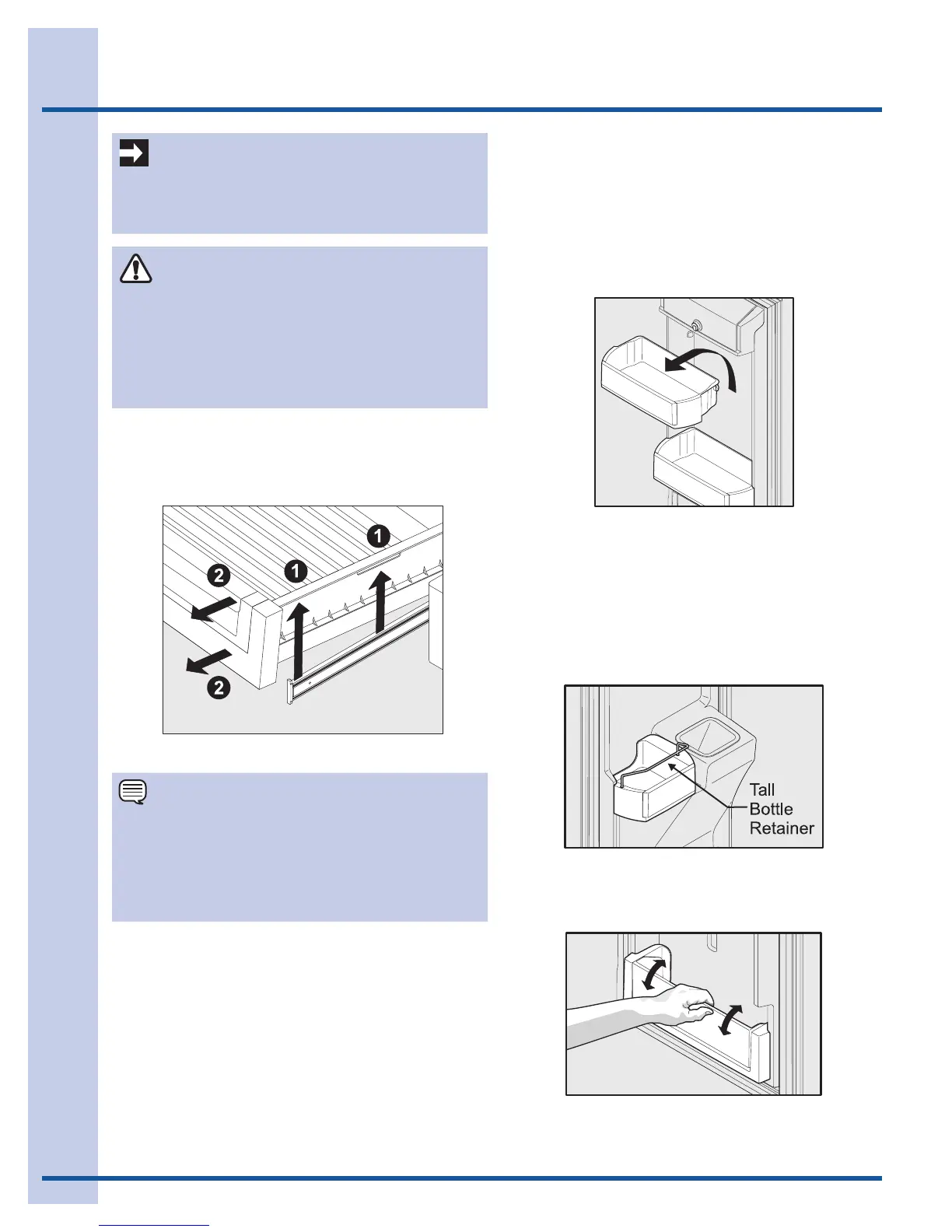 To change the position of an adjustable door bin: