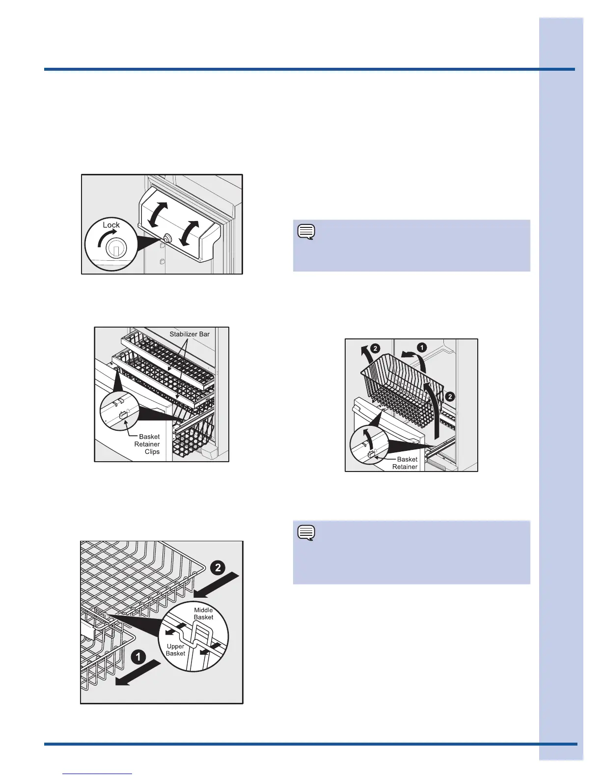 To reinstall upper and middle baskets (select models),