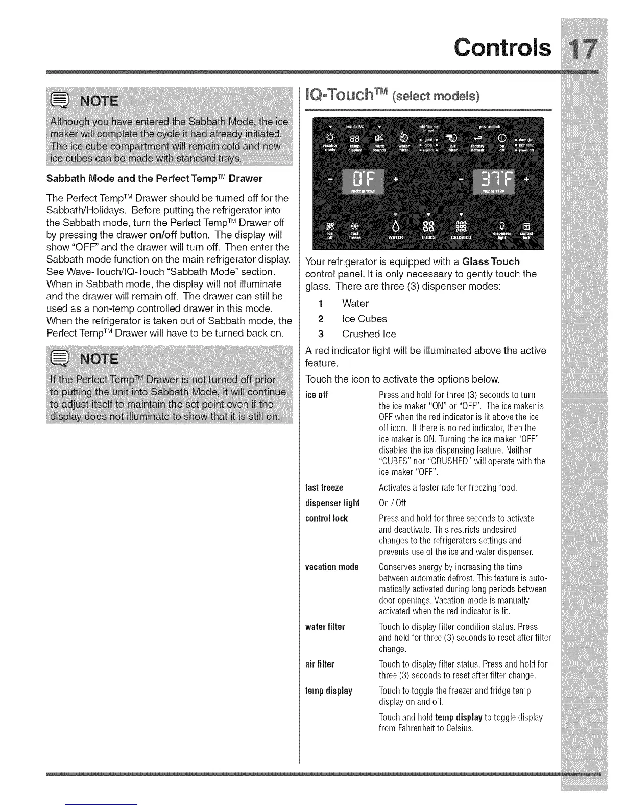 the Sabbath mode, turn the Perfect TempTMDrawer off