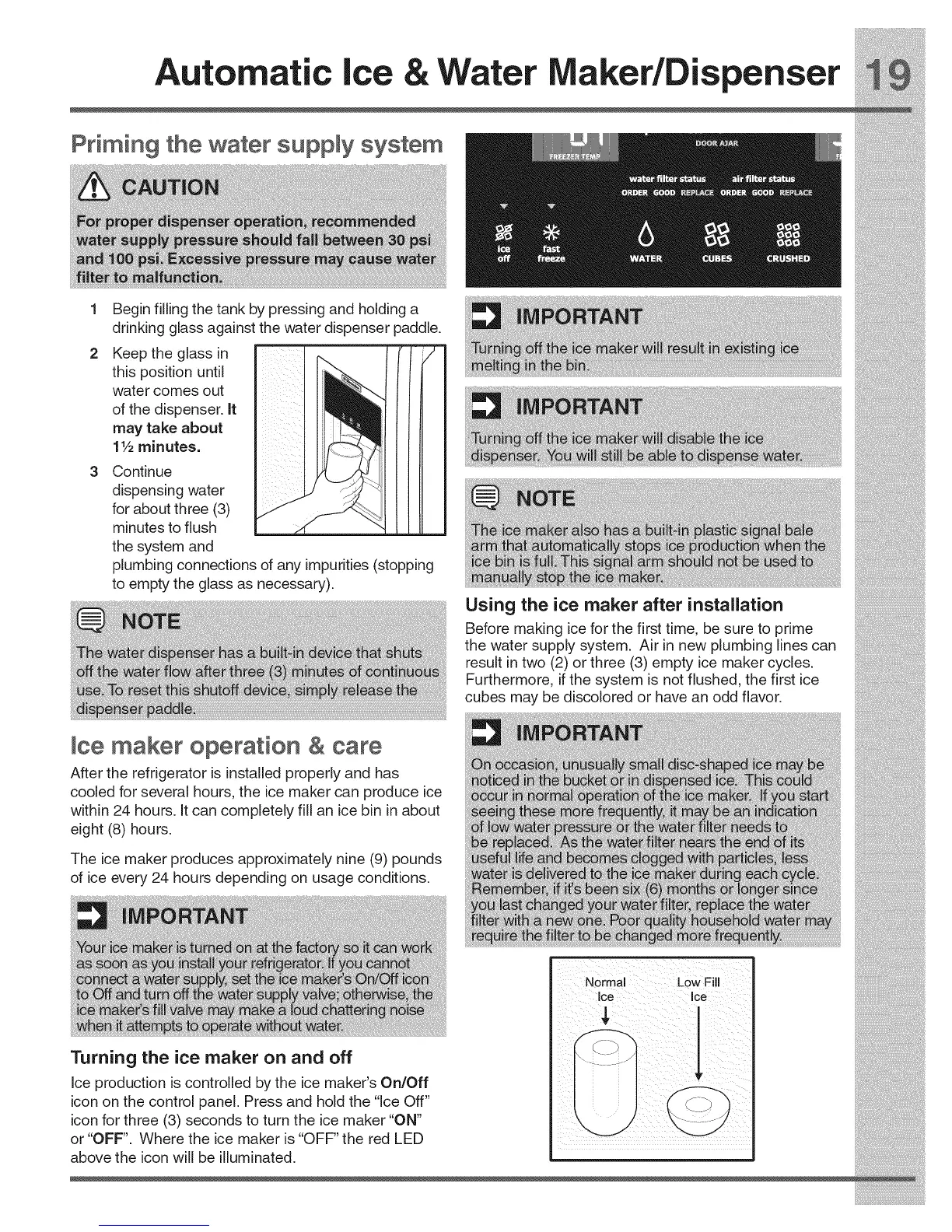 Using the ice maker after installation