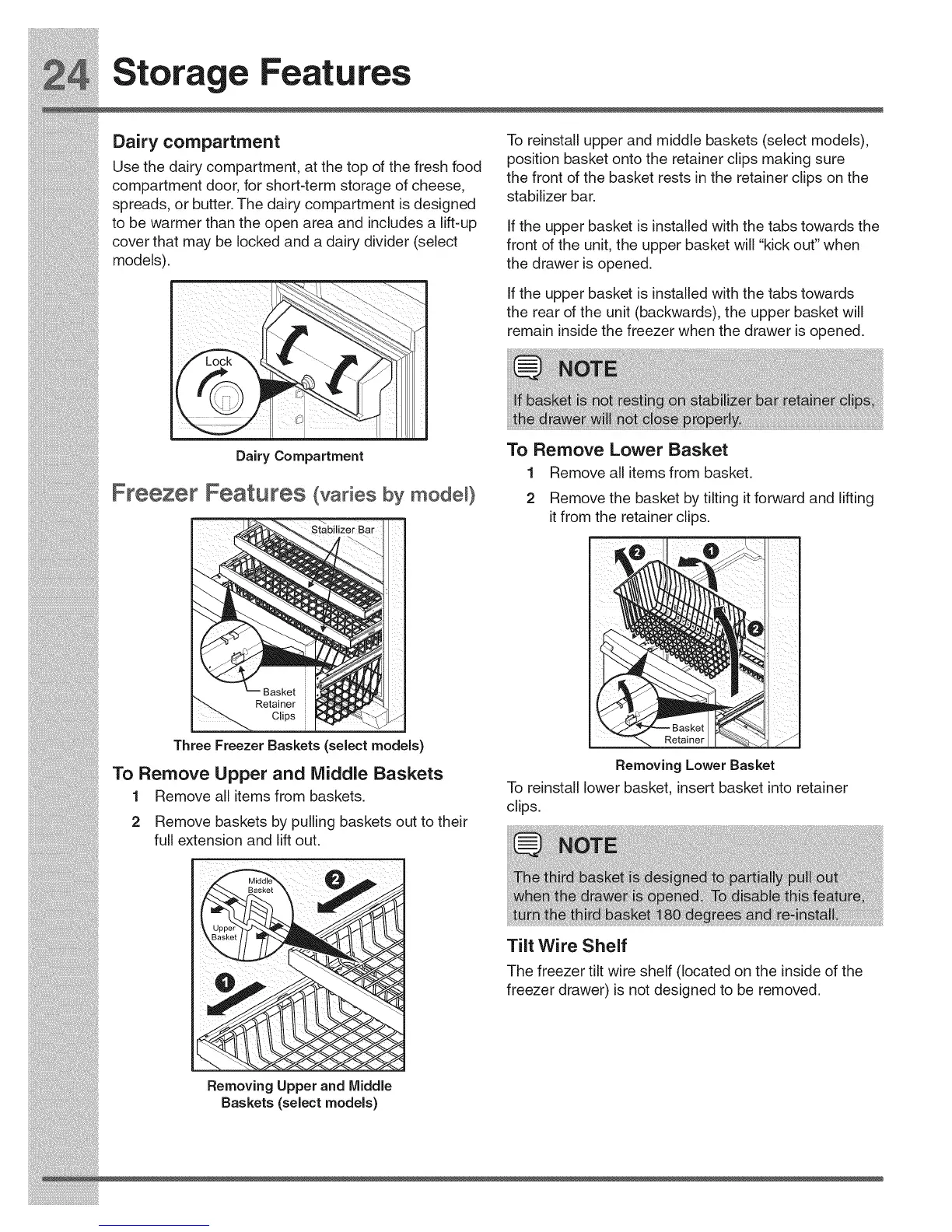 Freezer Features (varies by mode_) 2 Remove the basket by tilting it forward and lifting