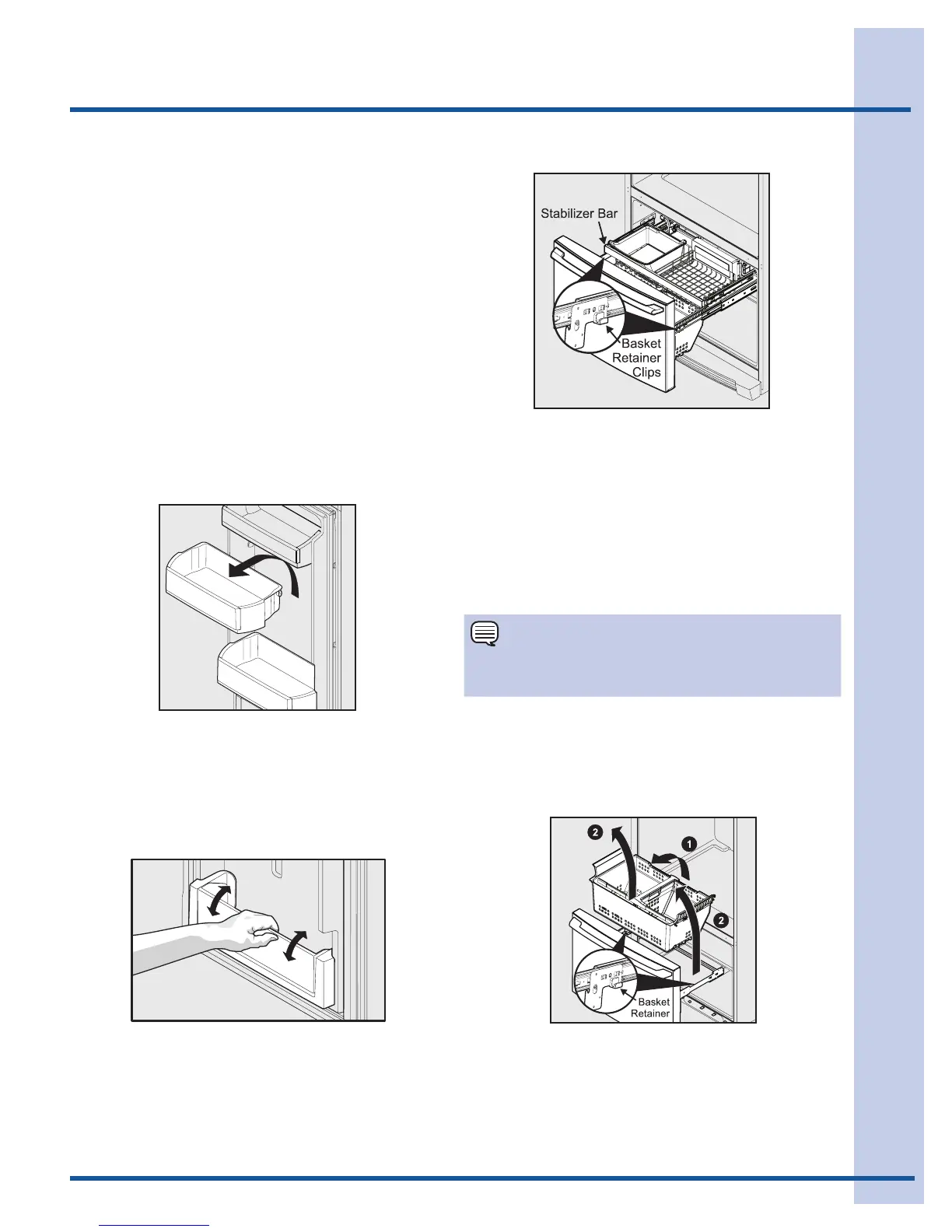To reinstall lower basket, insert basket into retainer