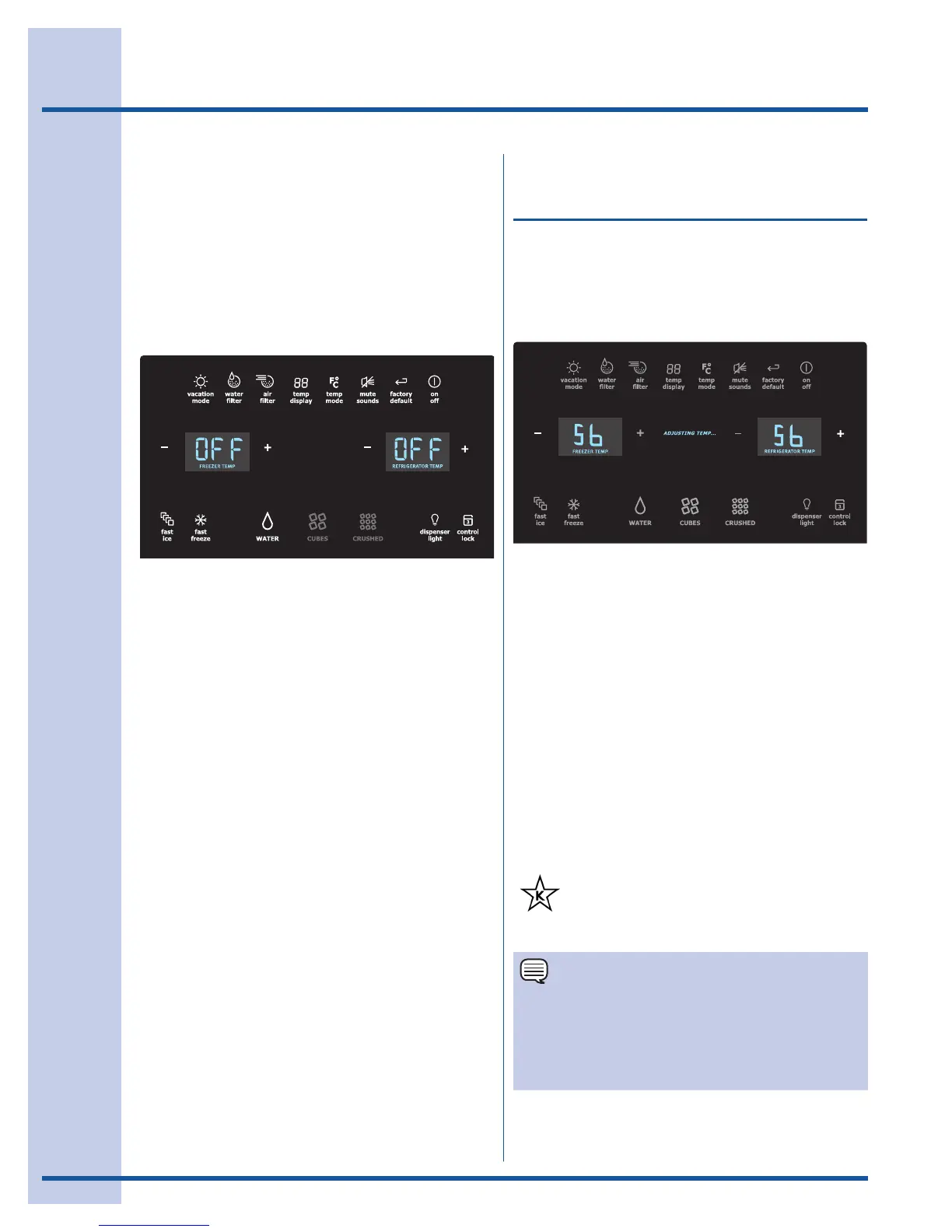 refrigerator “+” indicators for five seconds for both
