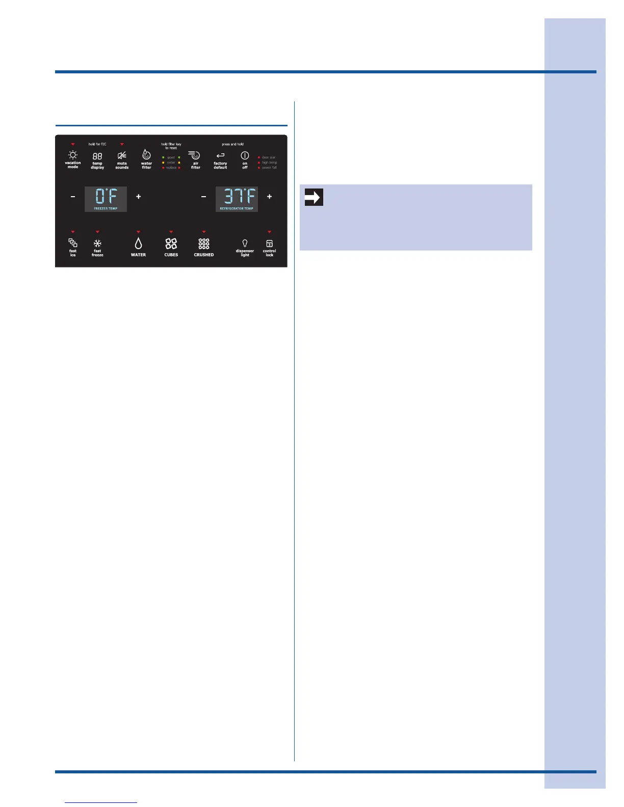 temp display Touch to toggle the freezer and refrigerator