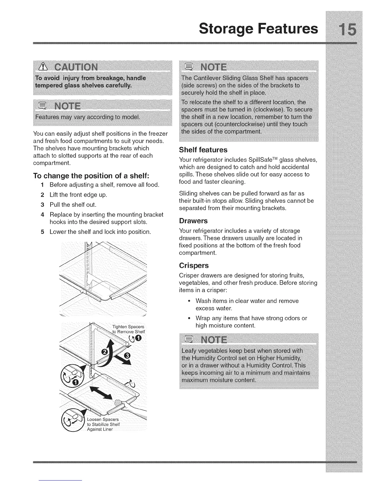 To change the position of a shelf" spills.These shelves slide out for easy access to