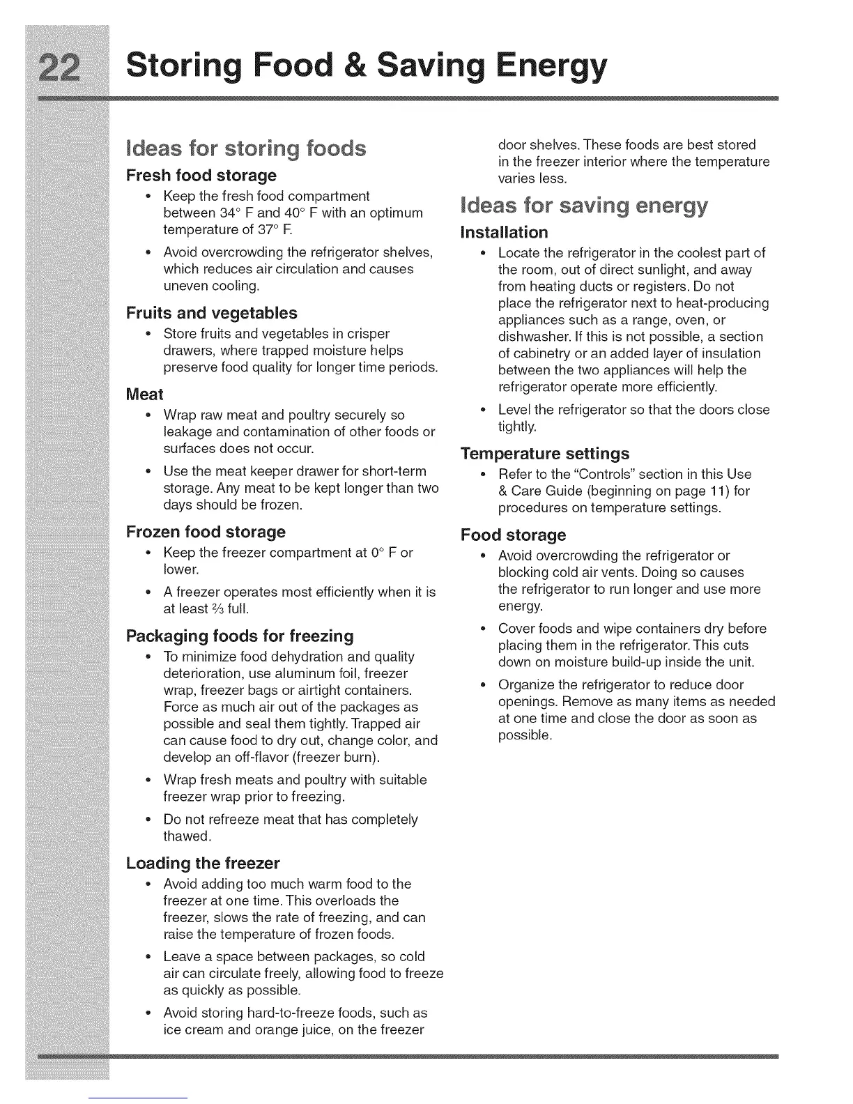 • Keep the freezer compartment at 0° F or