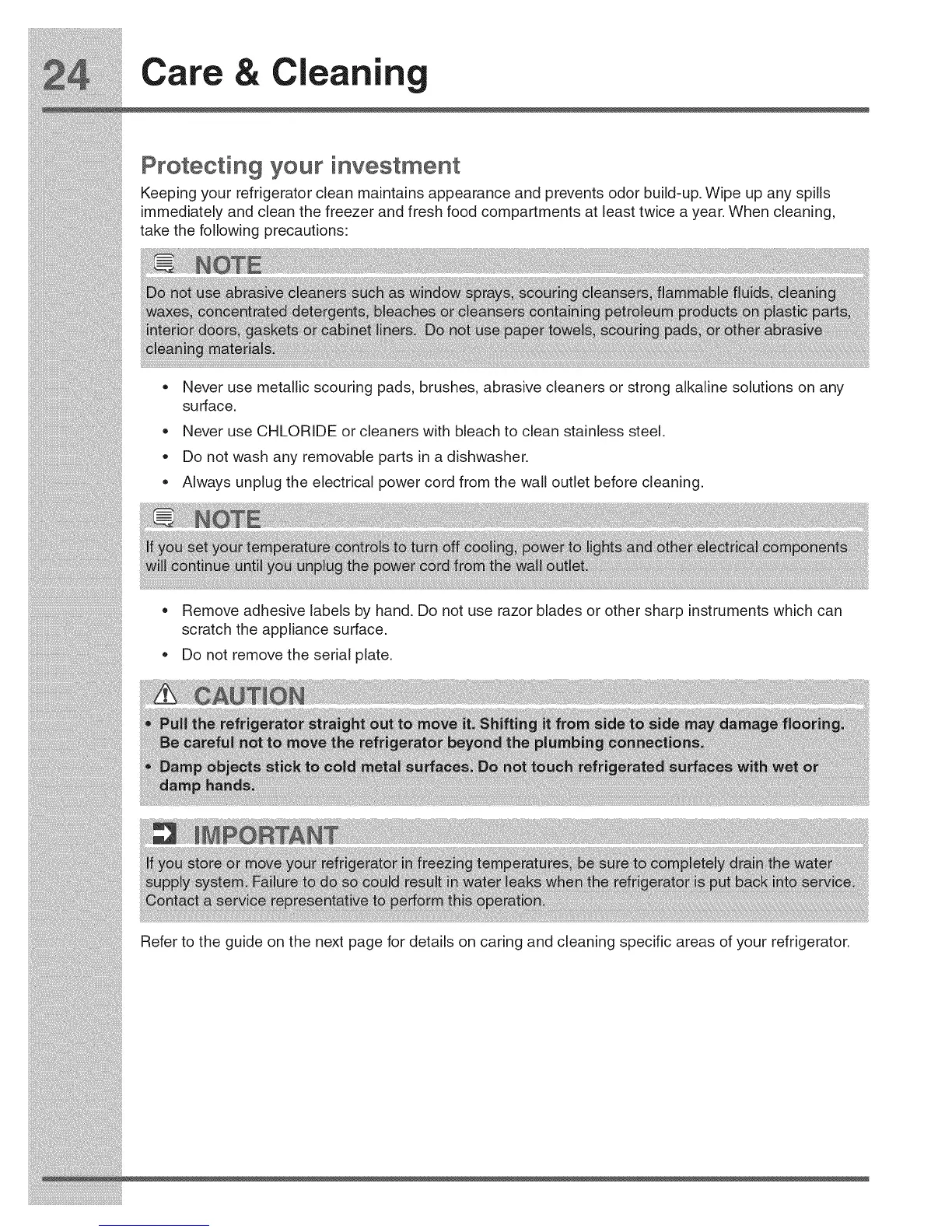 Refer to the guide on the next page for details on caring and cleaning specific areas of your refrigerator.