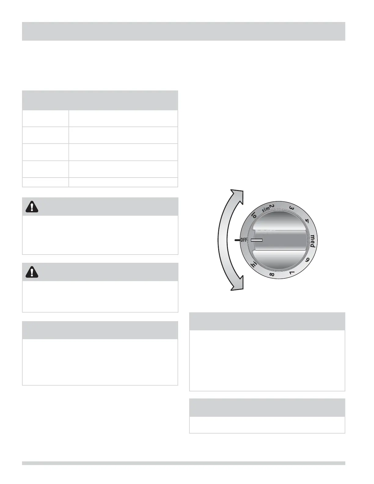 turn to a lower setting to fi nish cooking. Each surface