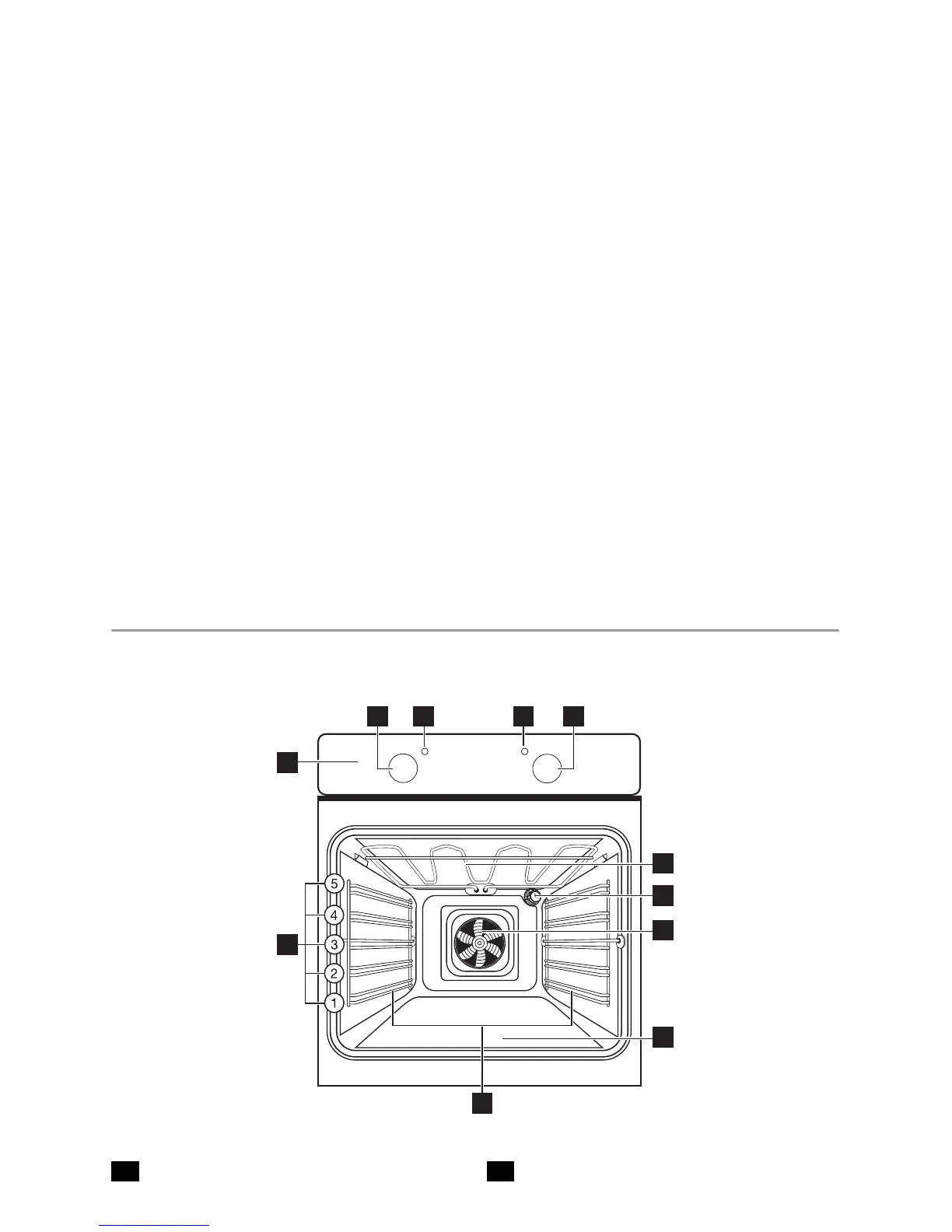 1 Control panel 2 Control knob for oven functions