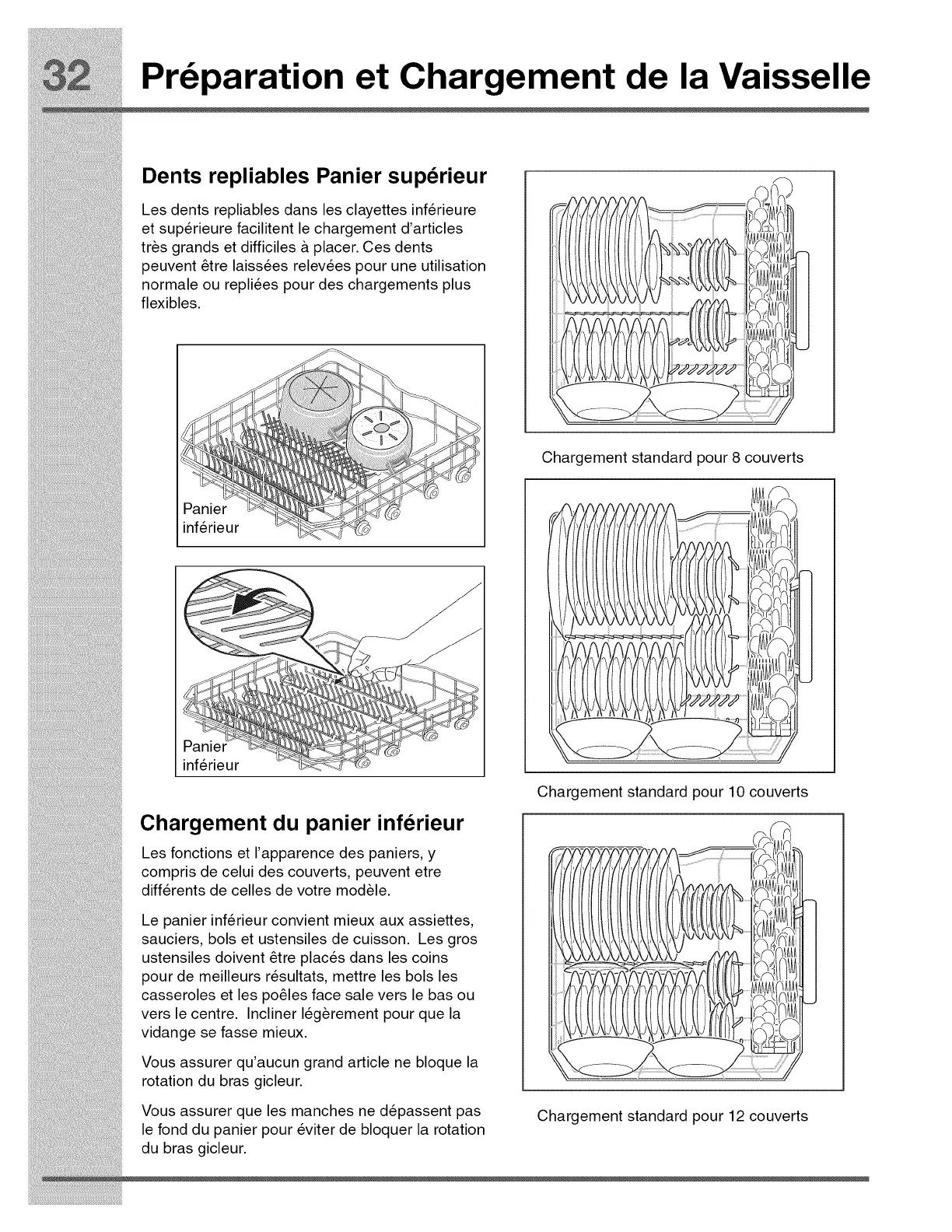 Les dents repliables dans les clayettes inf6rieure