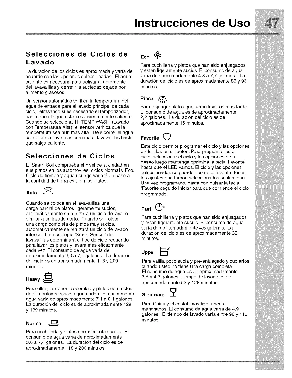 3,0 a 7,4 galones. La duraci6n del ciclo es de