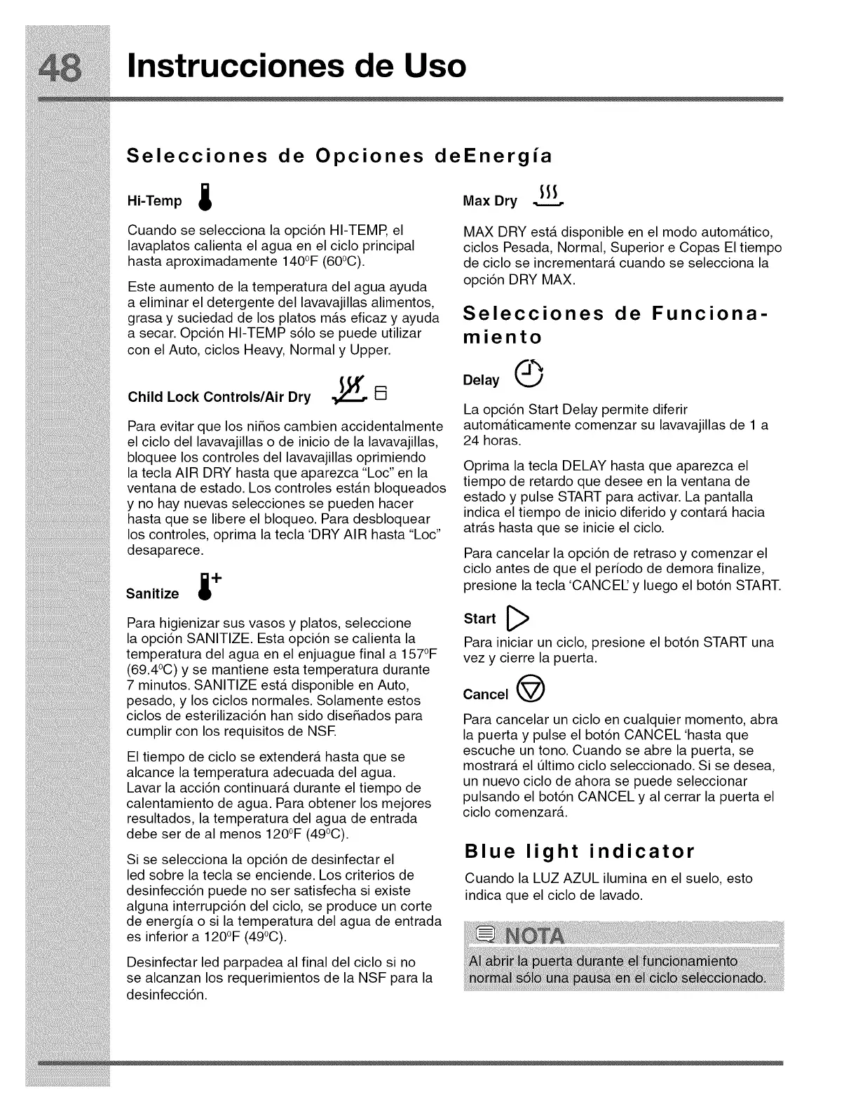 a secar. Opci6n HI-TEMP s61o se puede utilizar