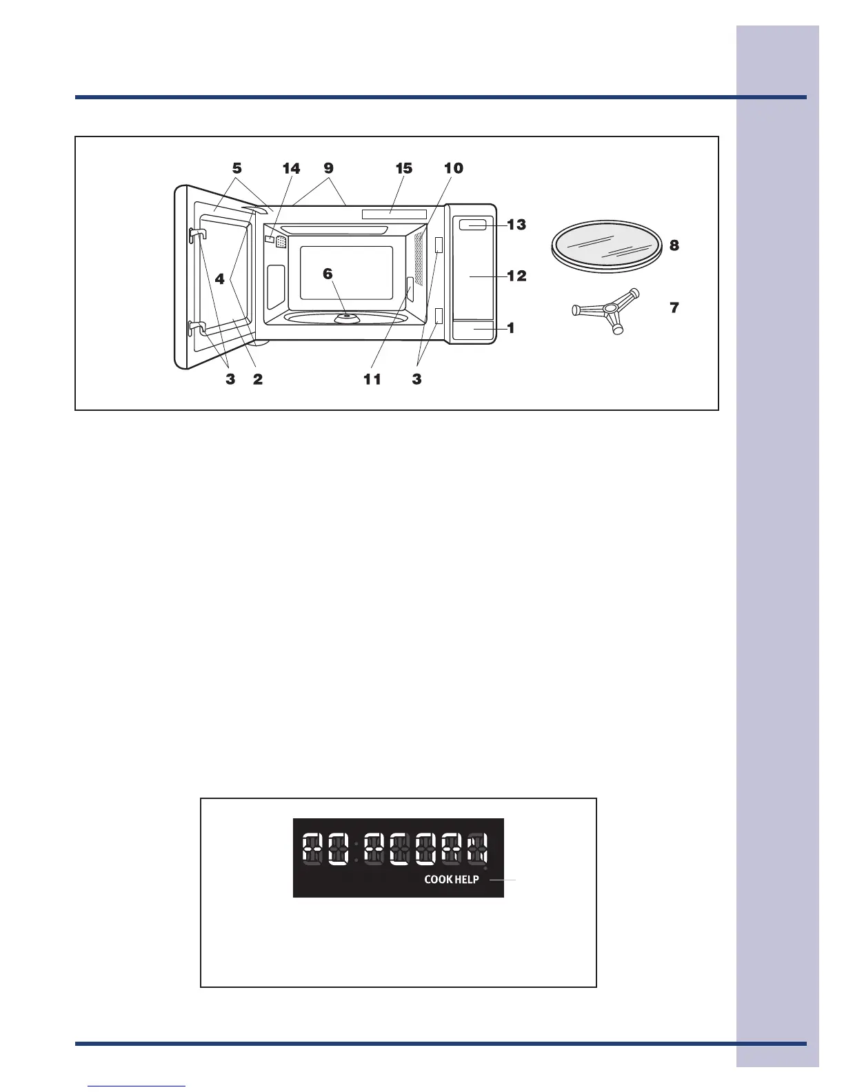 The 7-digit Interactive Display spells out operating steps and shows cooking hints. When HELP is lighted