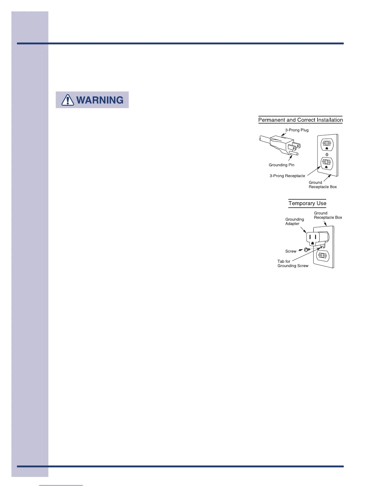 Improper use of the grounding plug can result in a risk of electric shock.