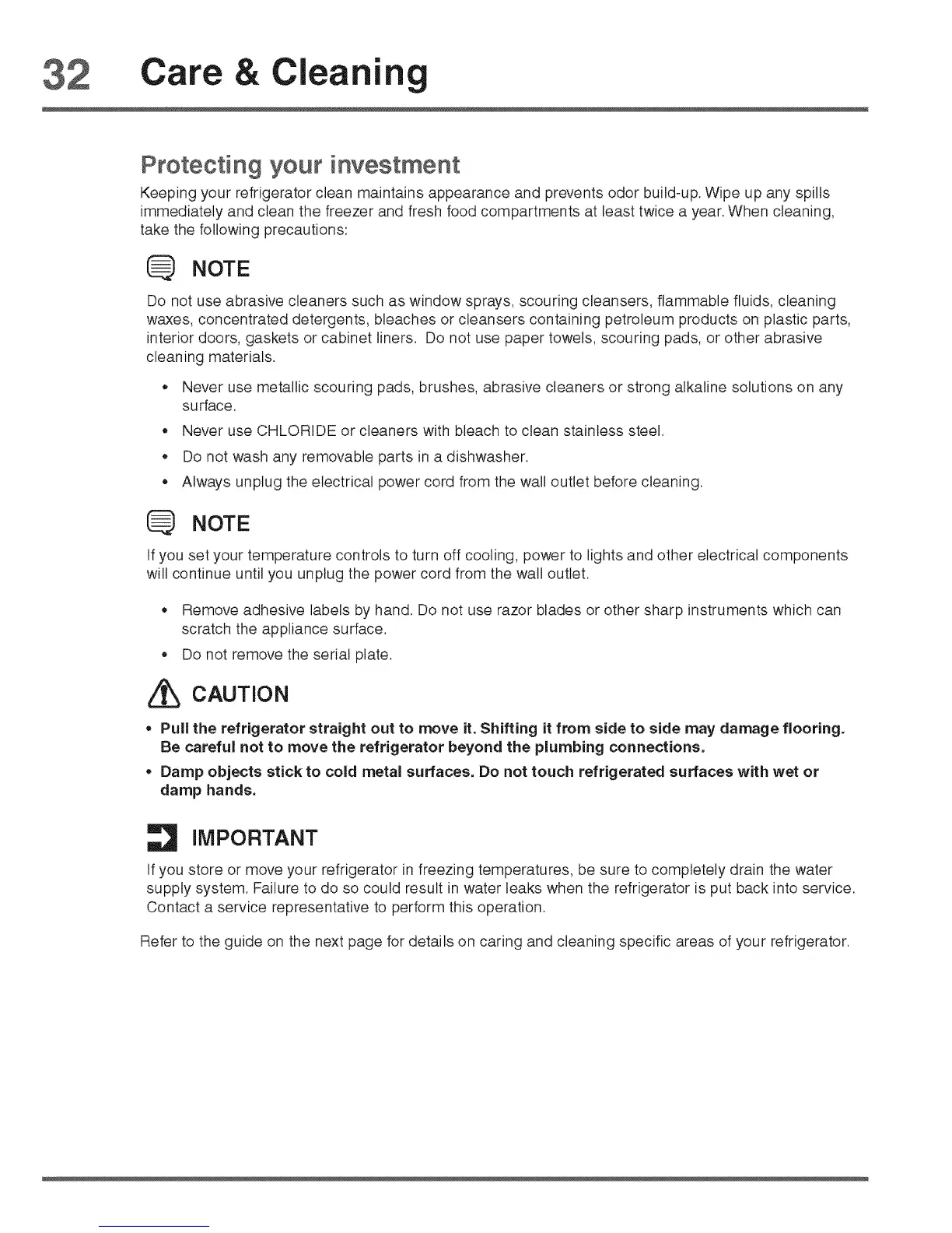 Refer to the guide on the next page for details on caring and cleaning specific areas of your refrigerator.