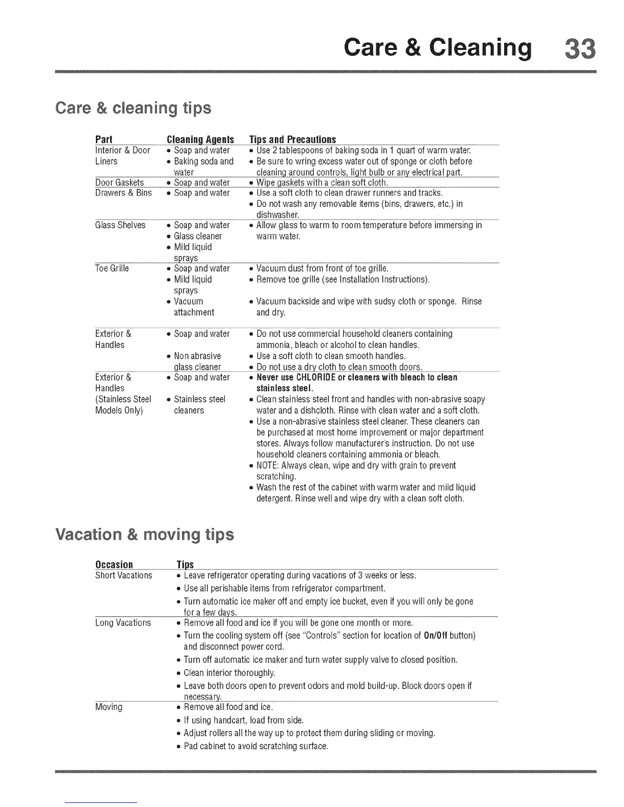 • Leave refrigerator operating during vacations of 3 weeks or less.