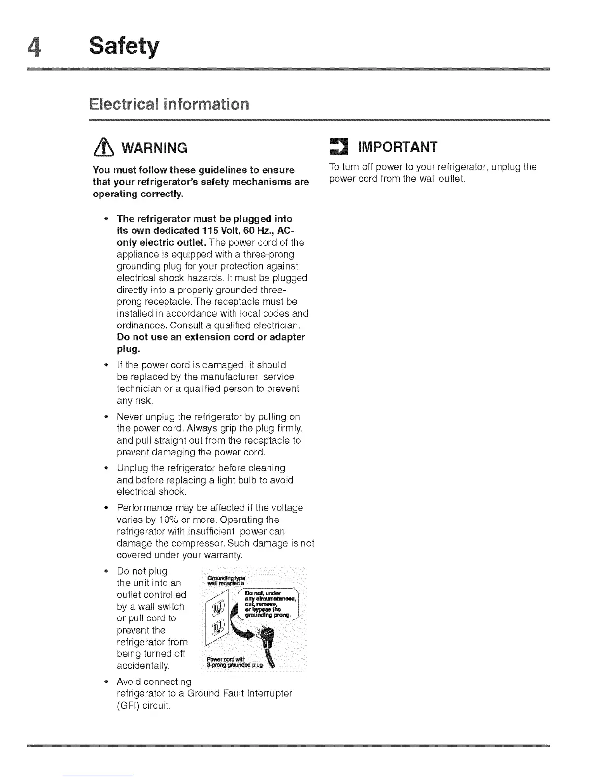 . Never unplug the refrigerator by pulling on