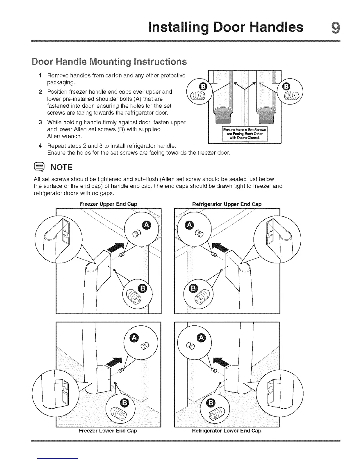 4 Repeat steps 2 and 3 to install refrigerator handle.