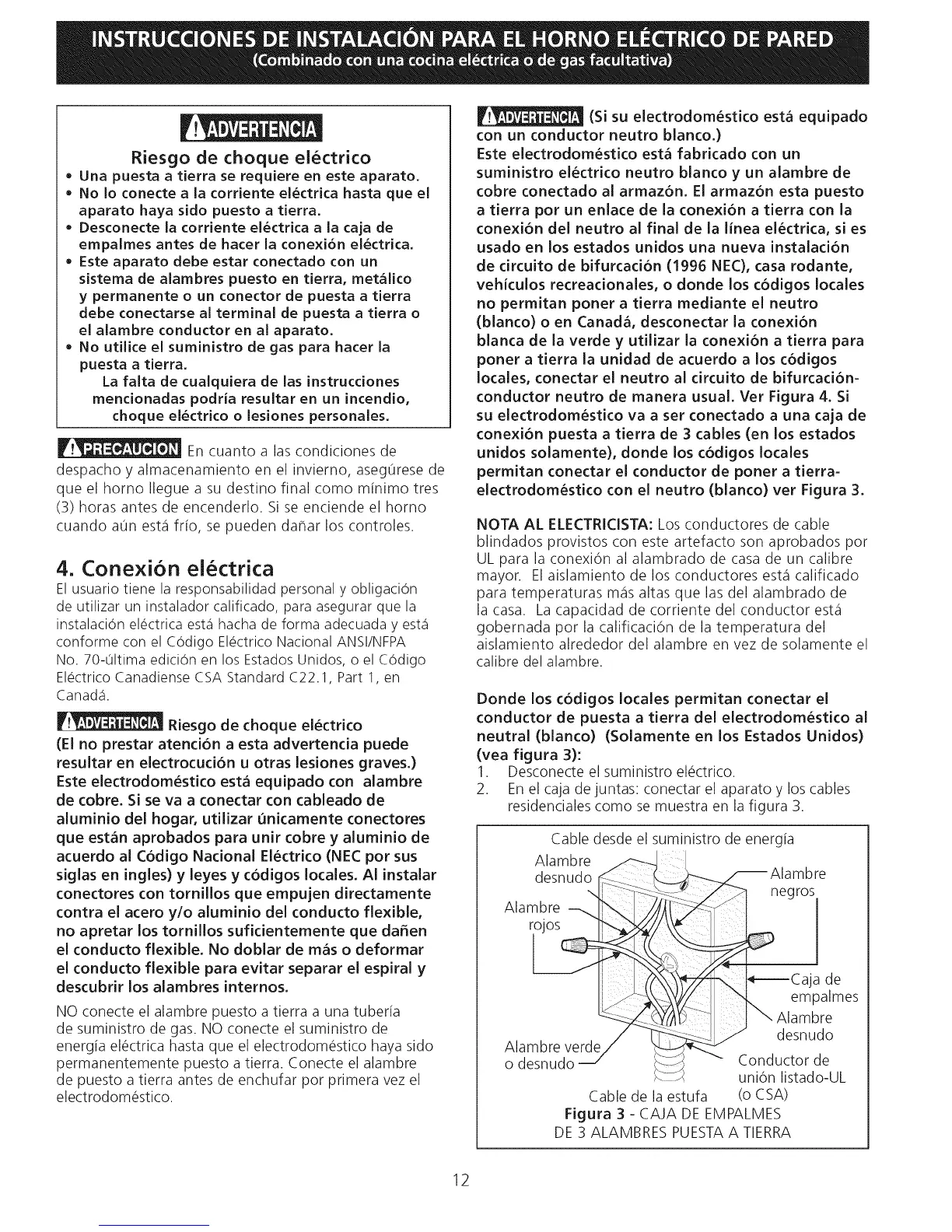 NOTA AL ELECTRICISTA: Los conductores de cable