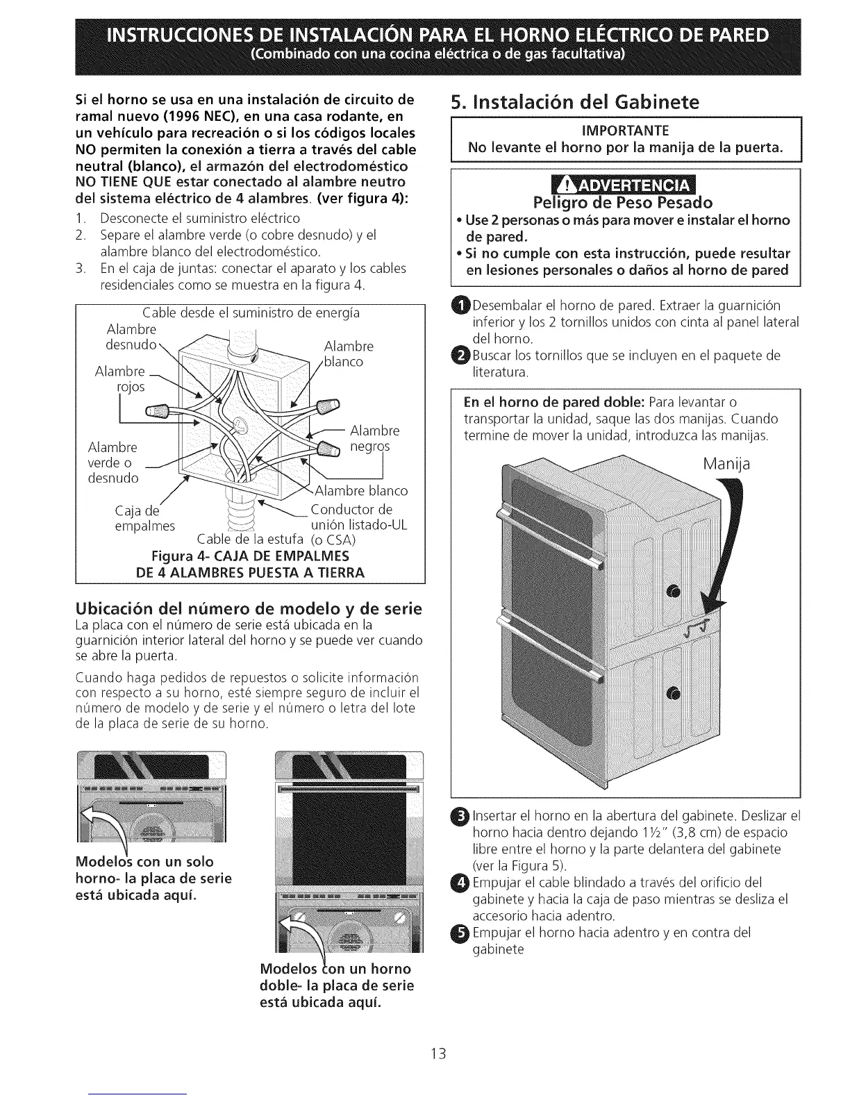 Si el horno se usa en una instalacion de circuito de