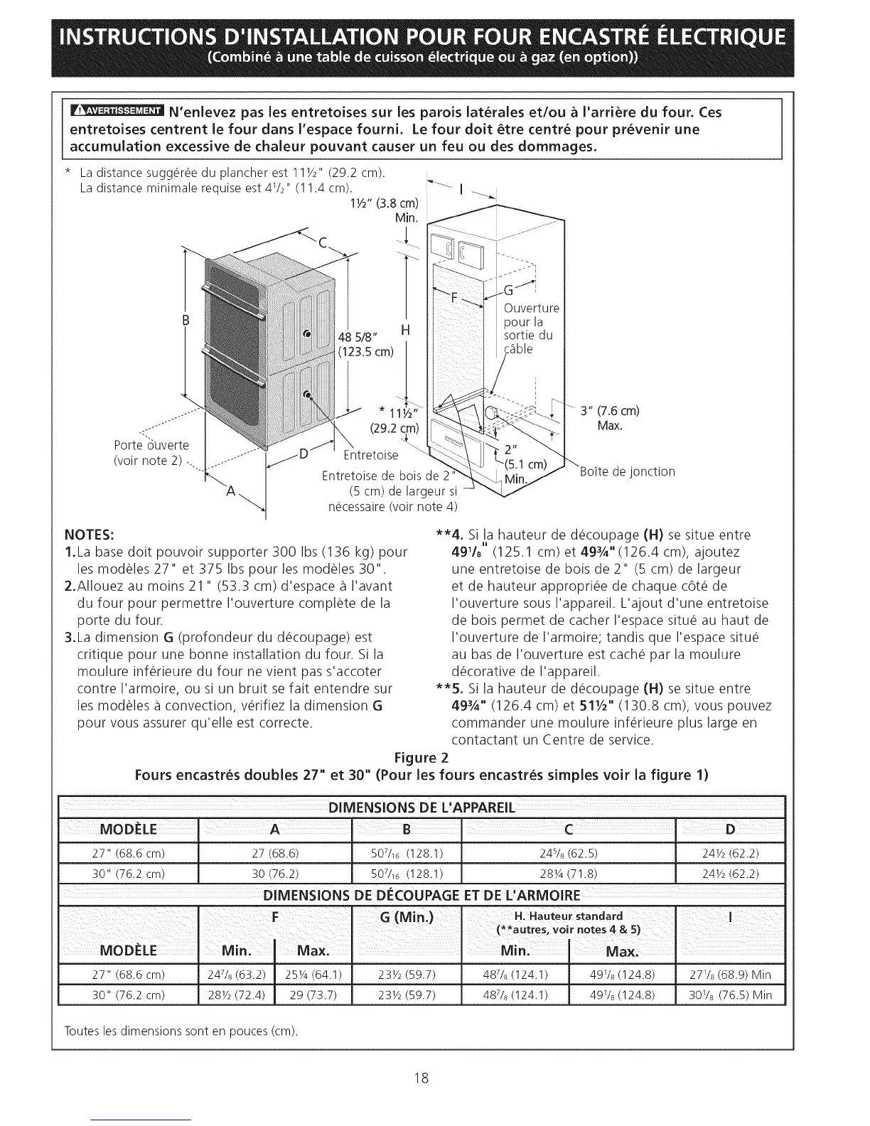 Fours encastres doubles 27" et 30" (Pour les fours encastres simples voir la figure I)