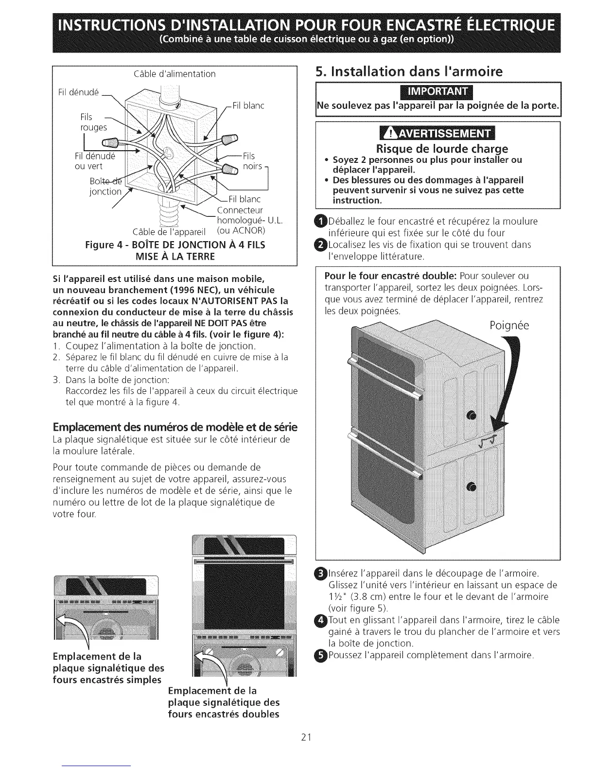 Pour le four encastre double: Pour soulever ou