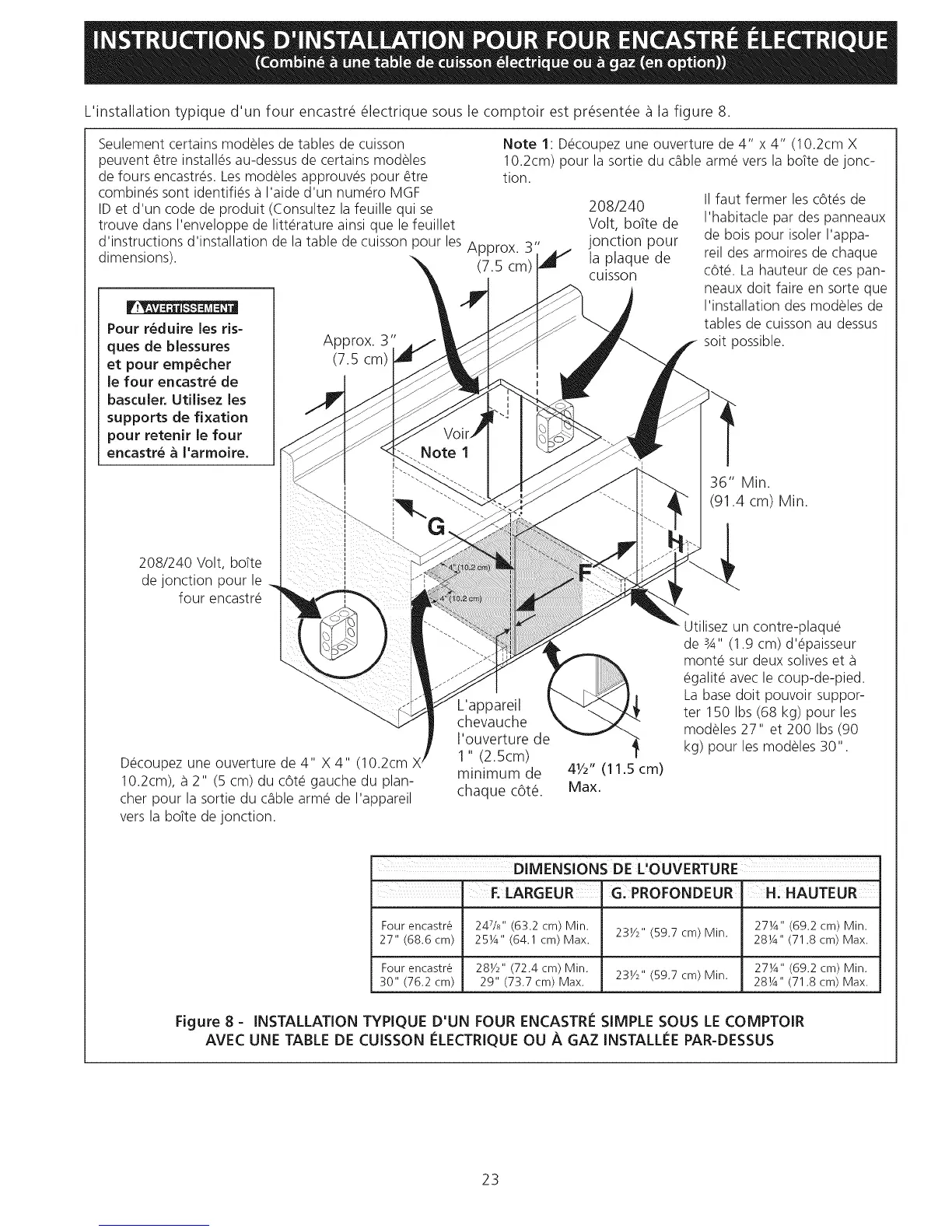 Figure 8 - INSTALLATION TYPIQUE D'UN FOUR ENCASTRlt SIMPLE SOUS LE COMPTOIR