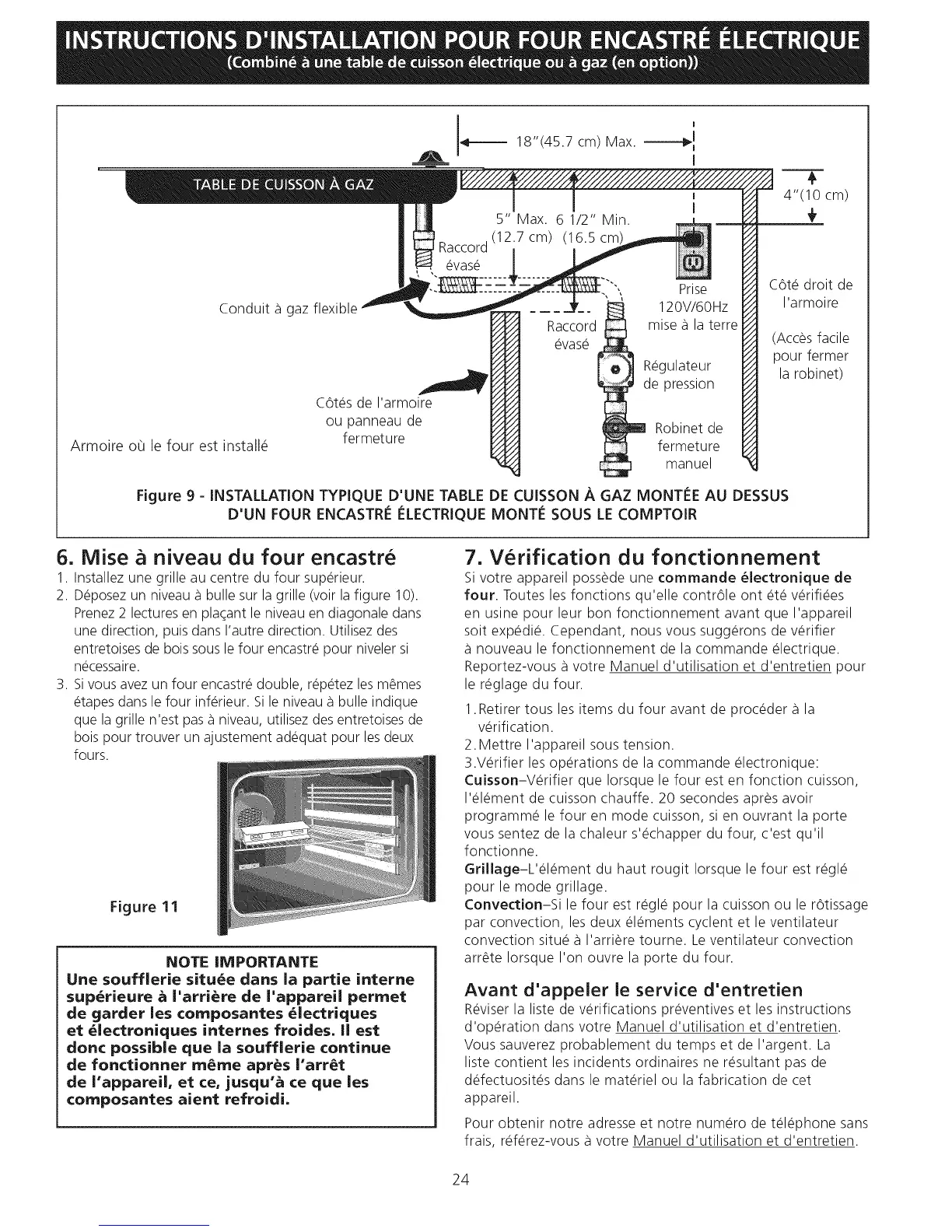 etapes dans le four inferieur. Si le niveau a bulle indique