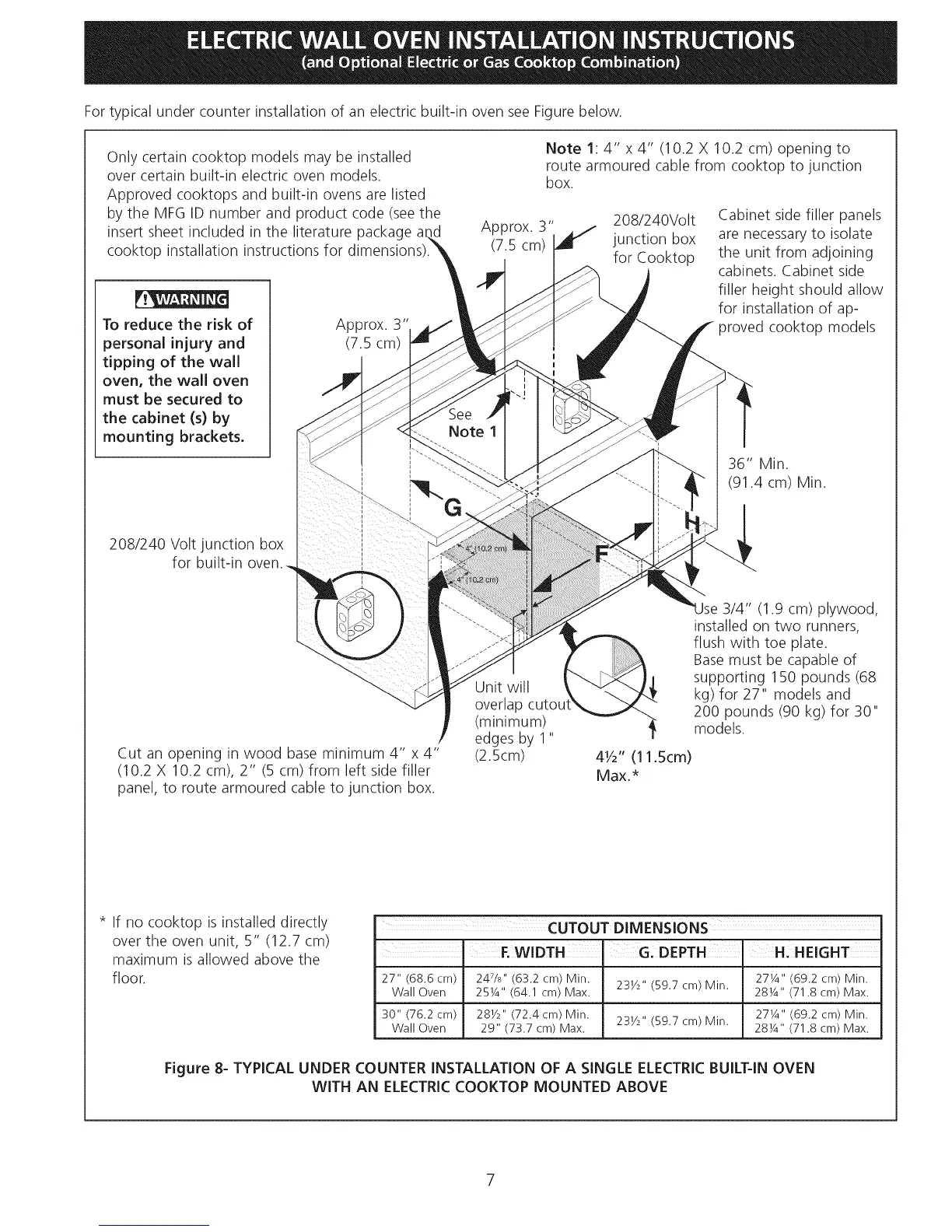 Figure 8- TYPICAL UNDER COUNTER INSTALLATION OF A SINGLE ELECTRICBUILT-IN OVEN