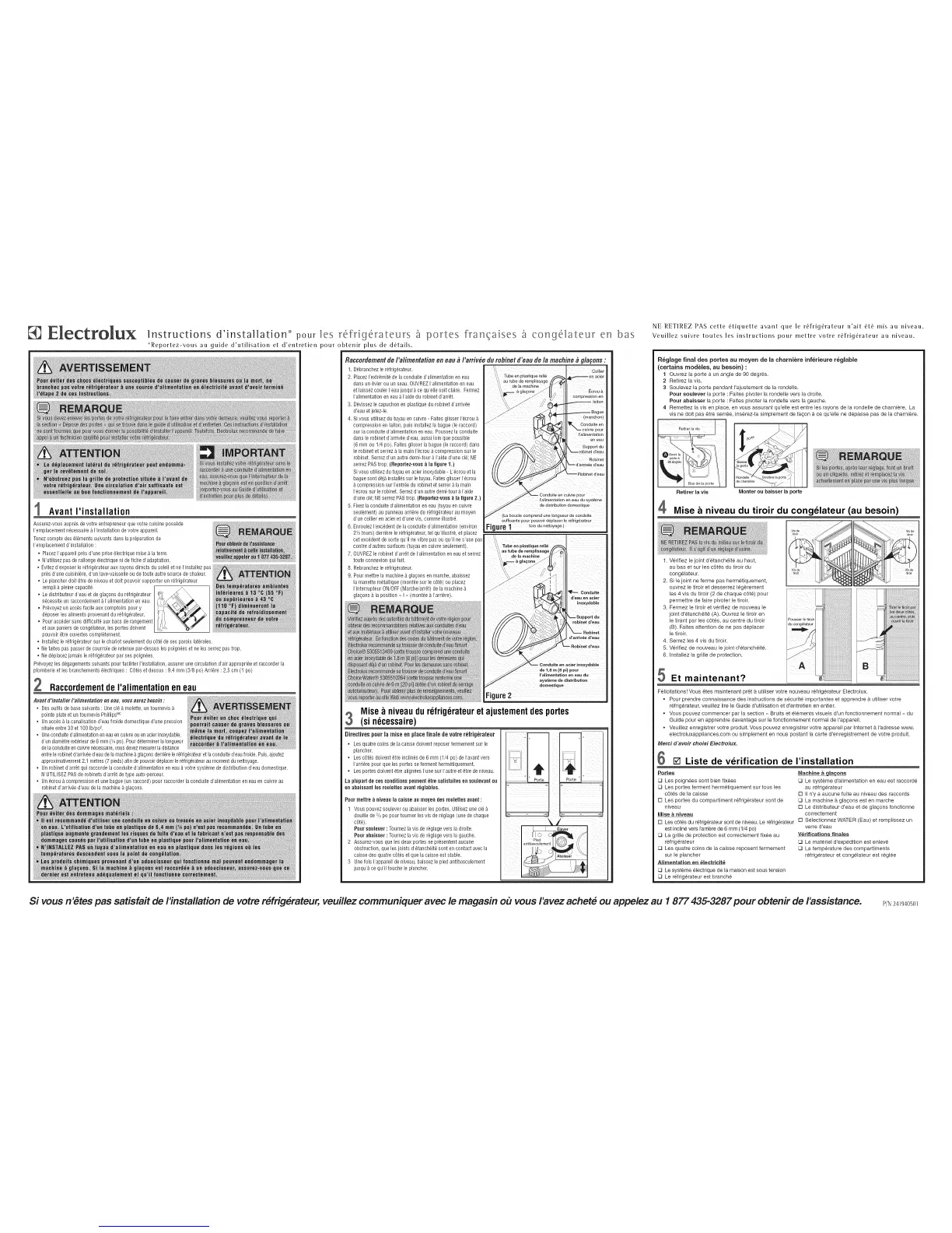 Si vous n'@tespus satisfait de/'installation de votre r frig#rateur, veuillez communiquer avec #emagasin ob vous l'avez achet ou appelez au 1 877 435-3287 pour obtenir de/'assistance. 241940501