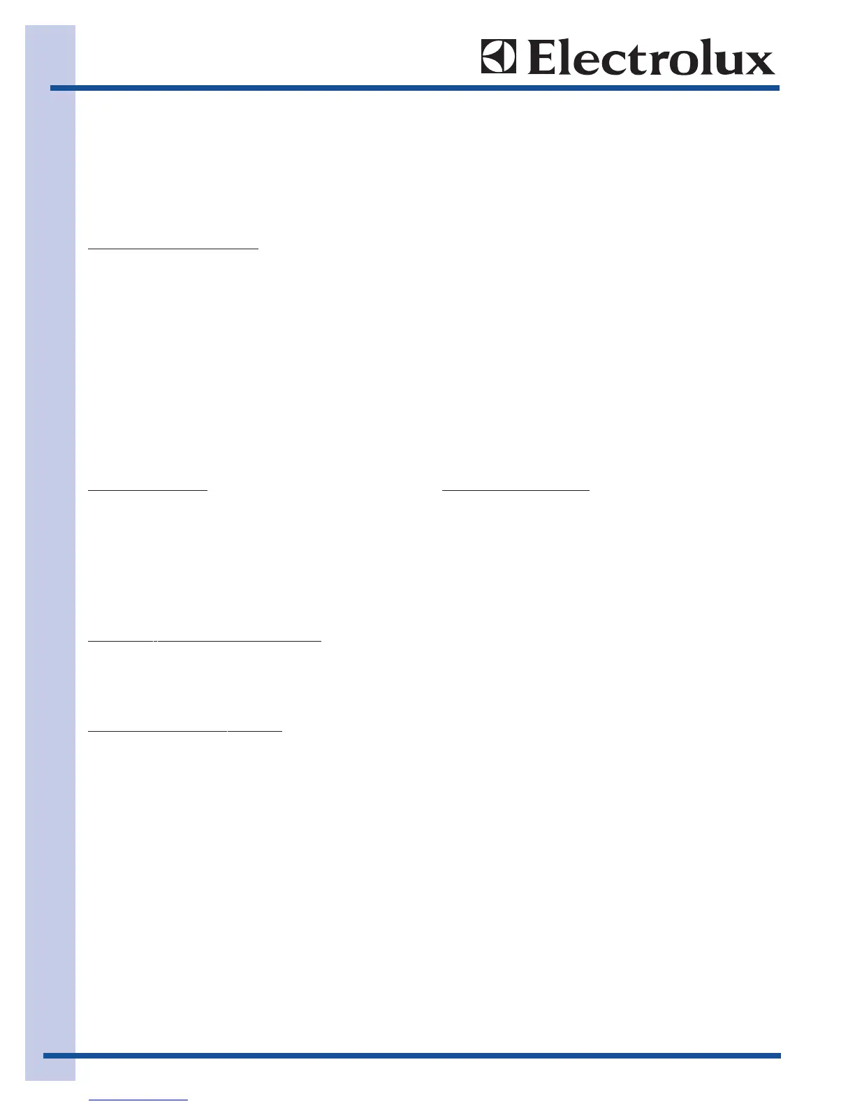 This Manual has been prepared to provide Electrolux Service Personnel
