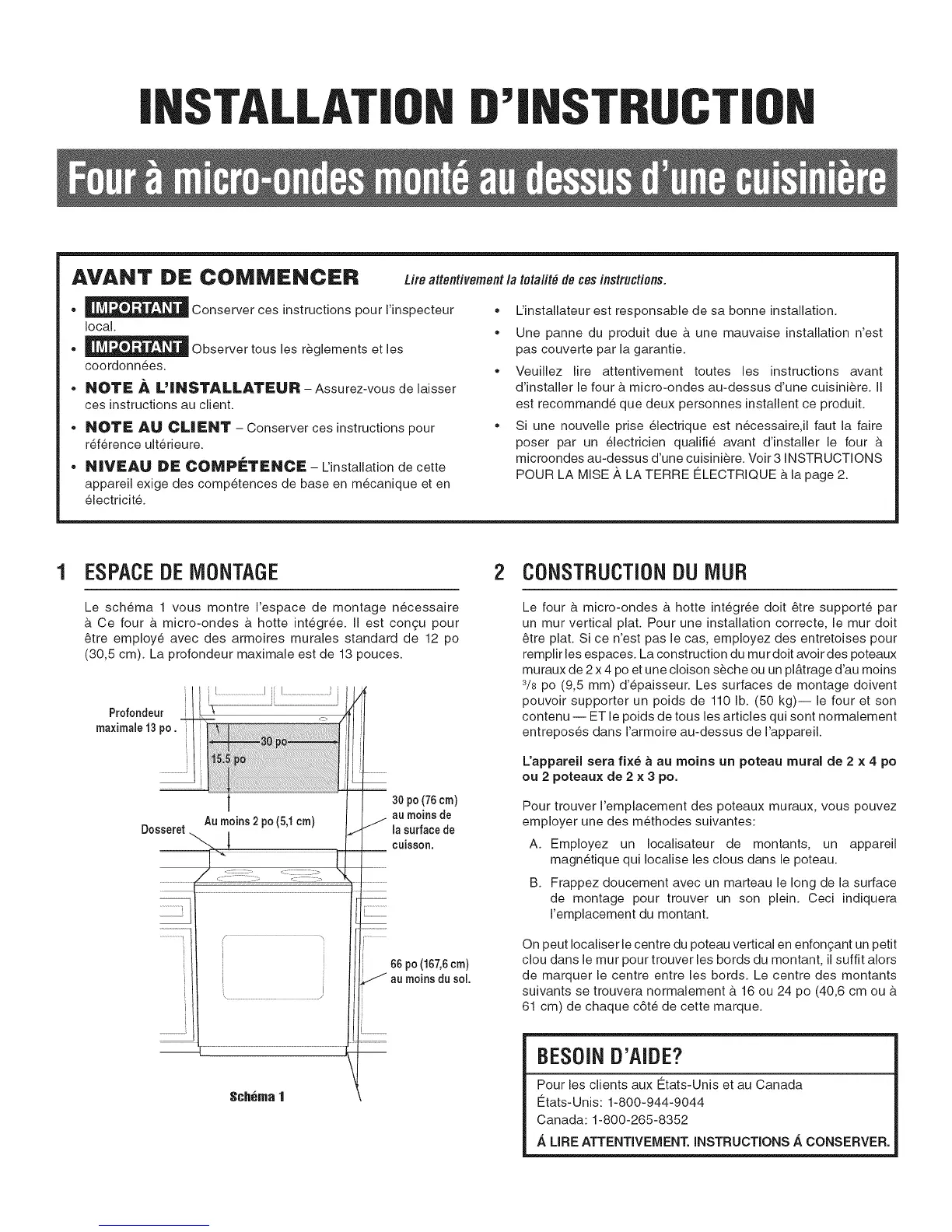 microondes au-dessus d'une cuisiniere. Voir 3 INSTRUCTIONS