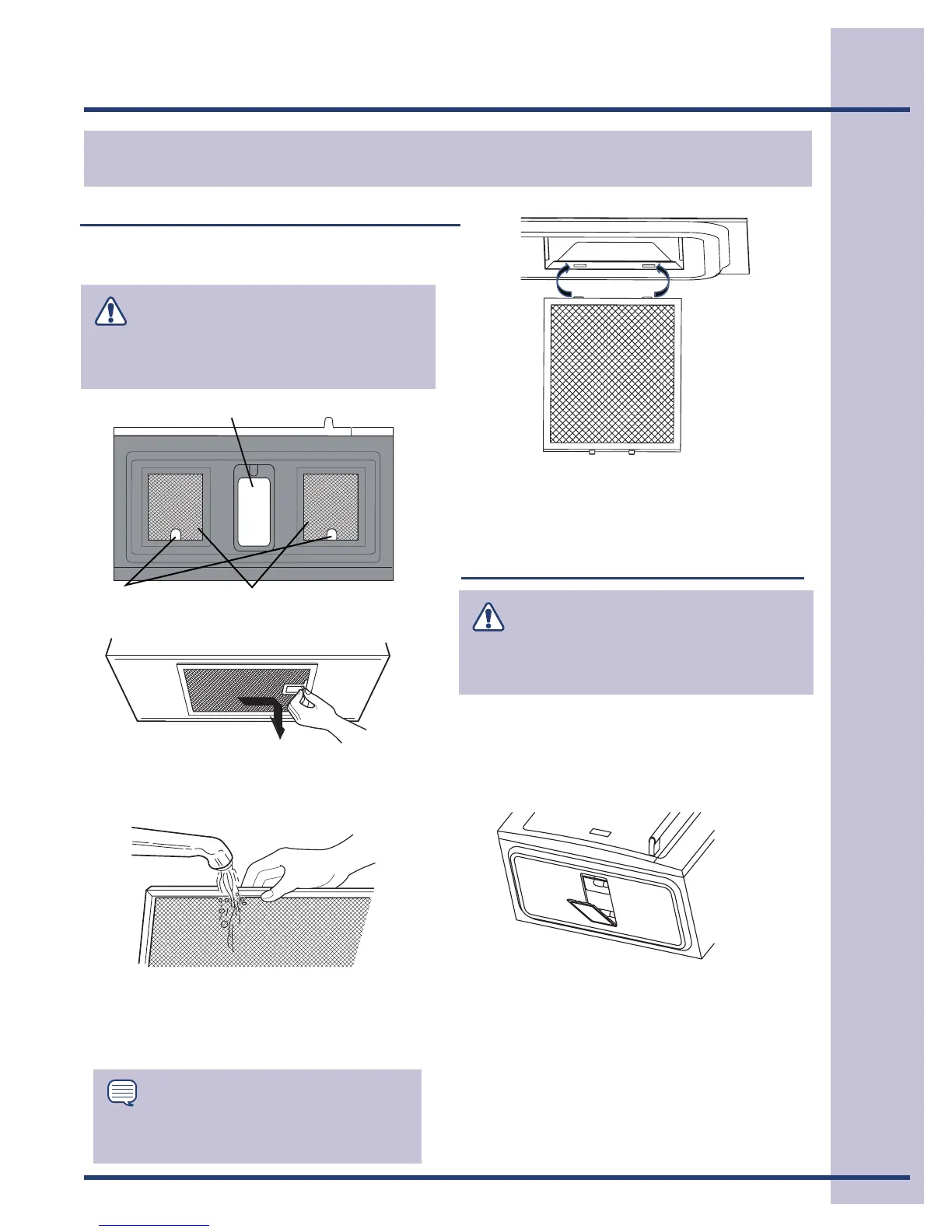 To reinstall the grease filters, place the metal tabs