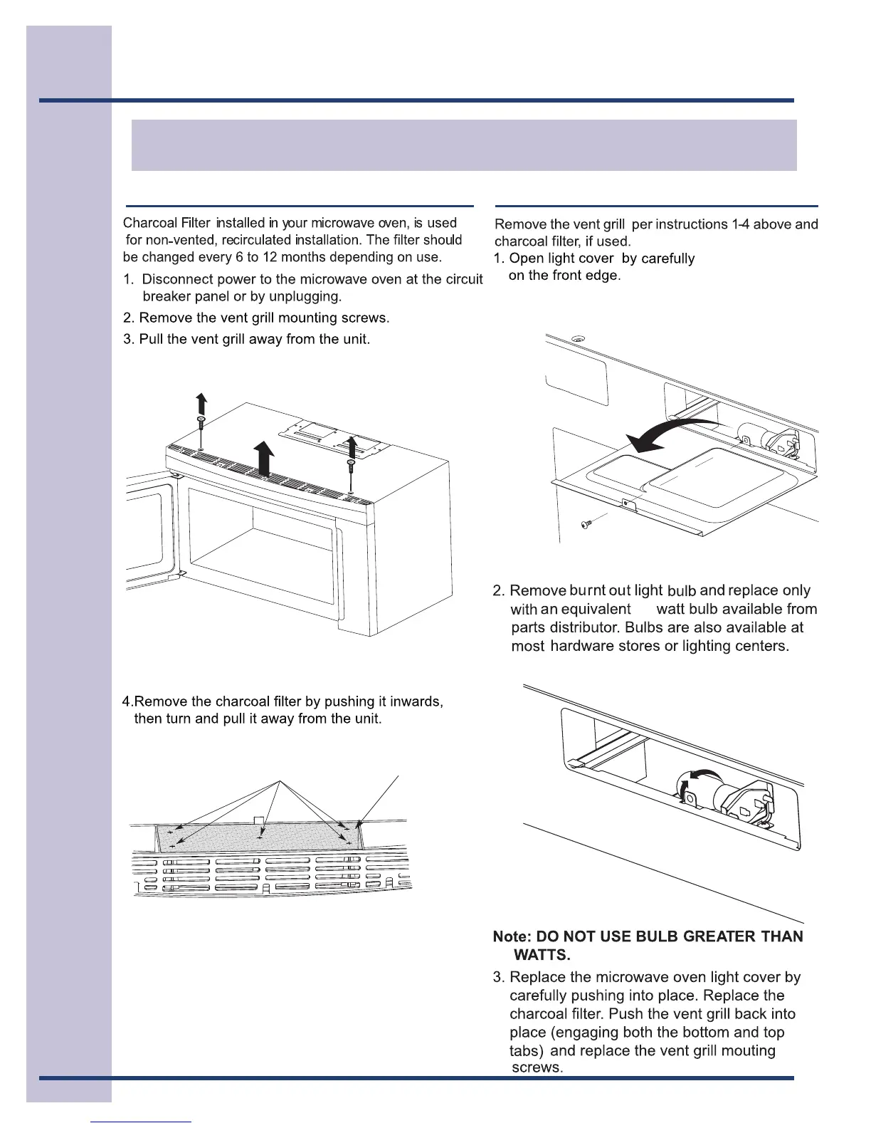 Electrolux EI30BM60MS - Light and Filter Replacement Procedures