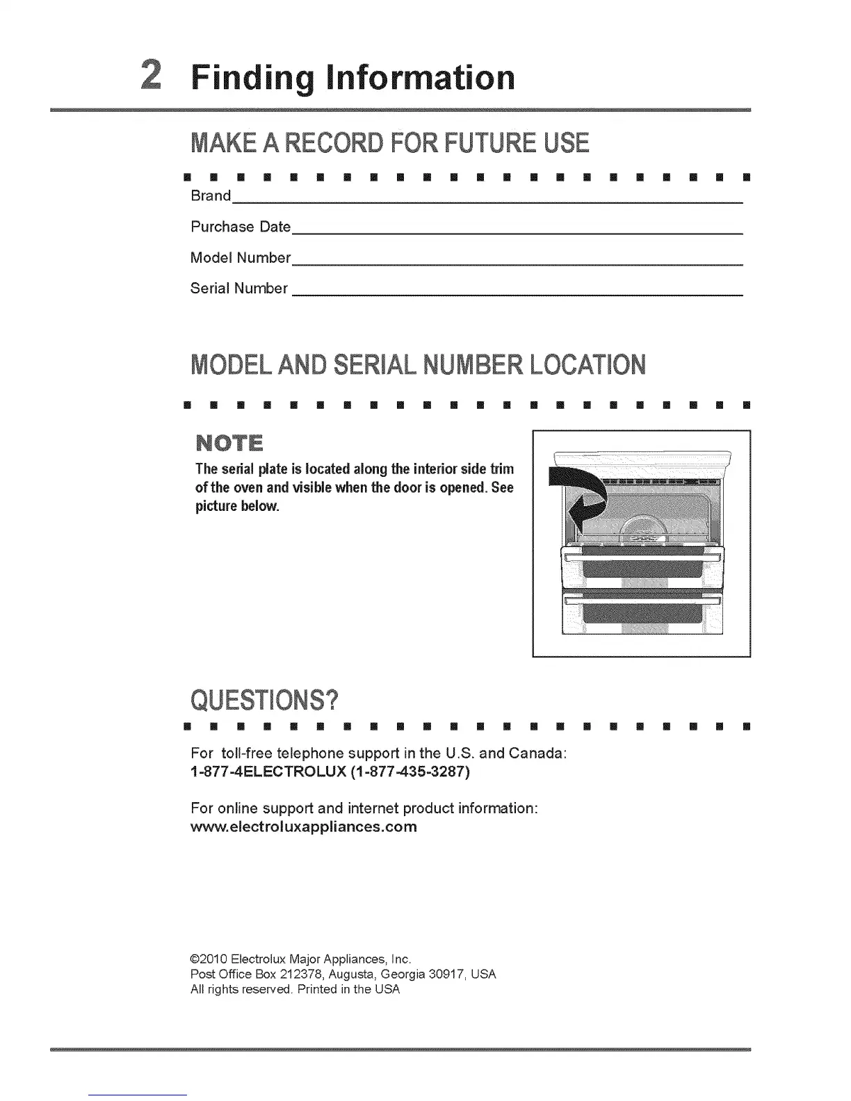 @2010 Electrolux Major Appliances, Inc.