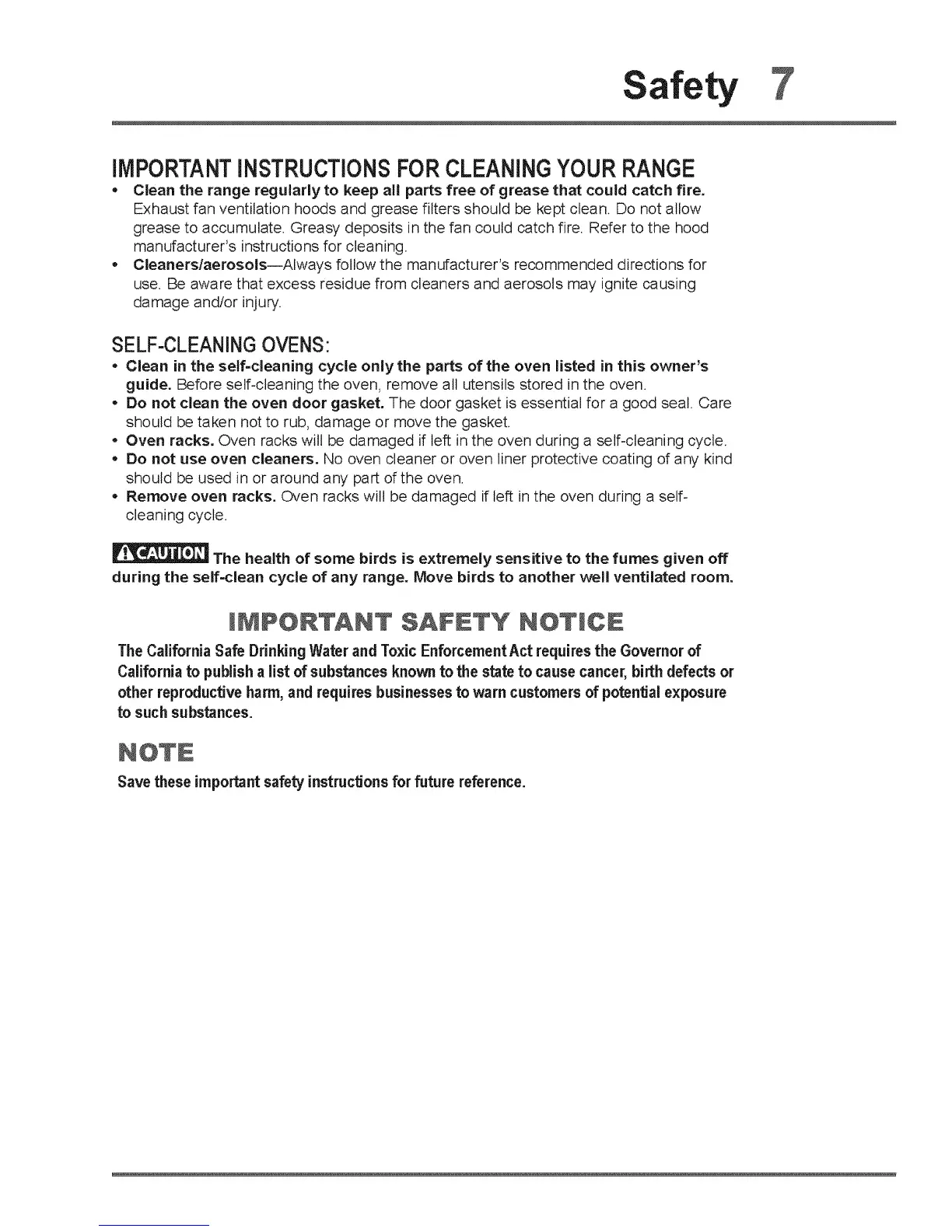 during the self-clean cycle of any range. Move birds to another well ventilated room.