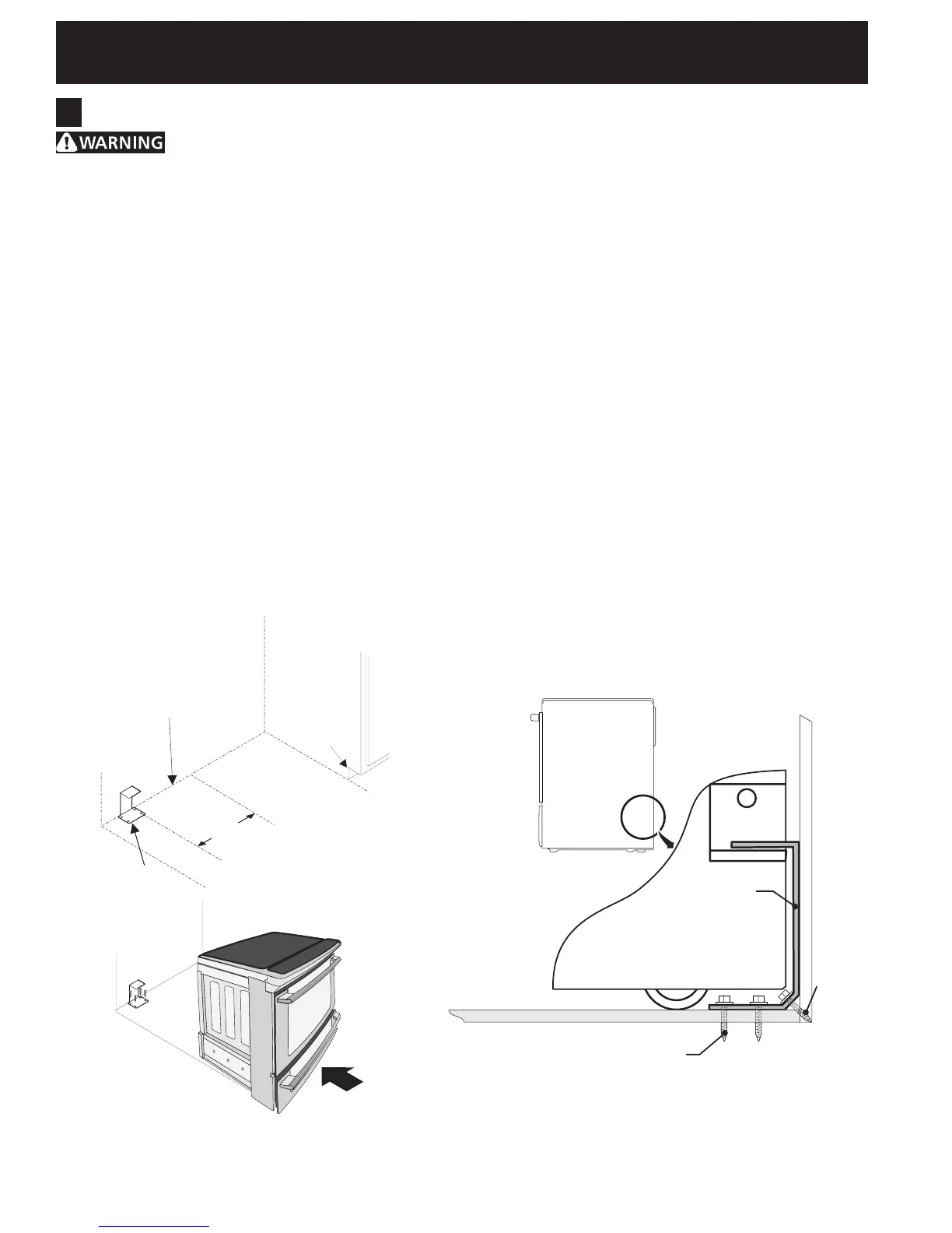 range, the range must be secured to the floor by properly