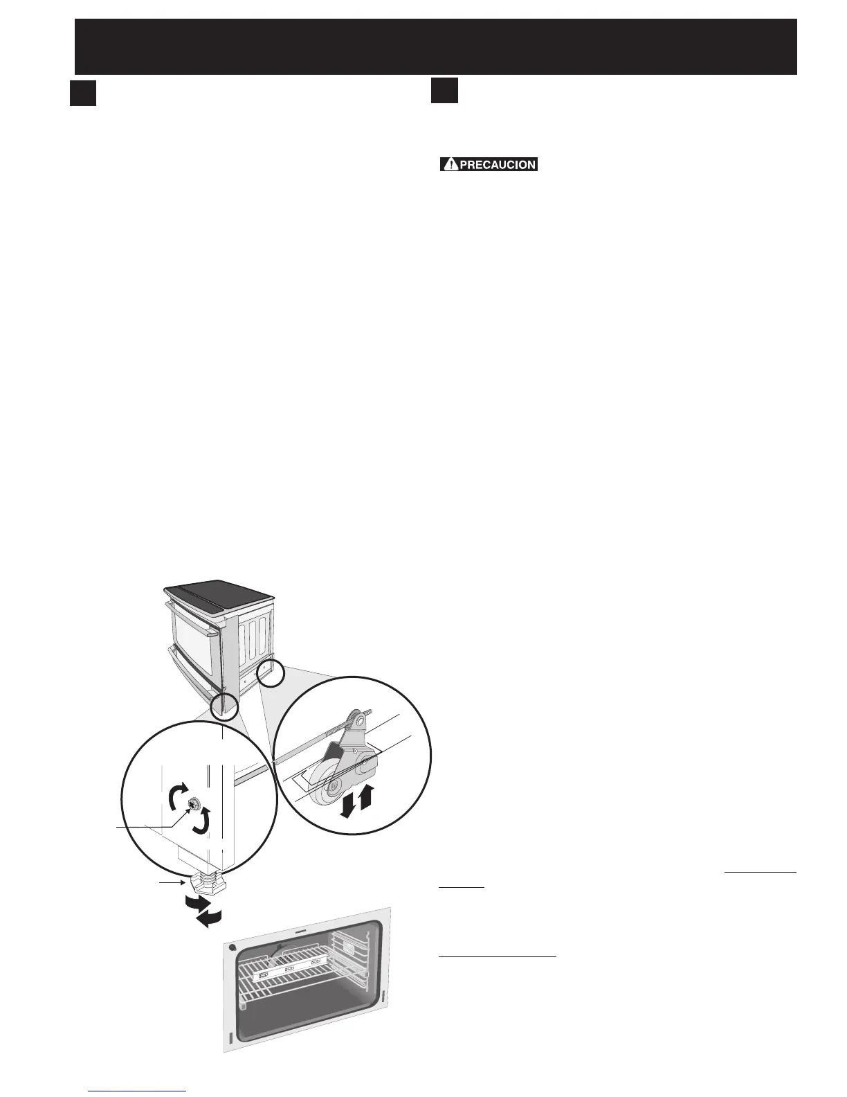 2. Ajuste las patas del electrodoméstico y las ruedas