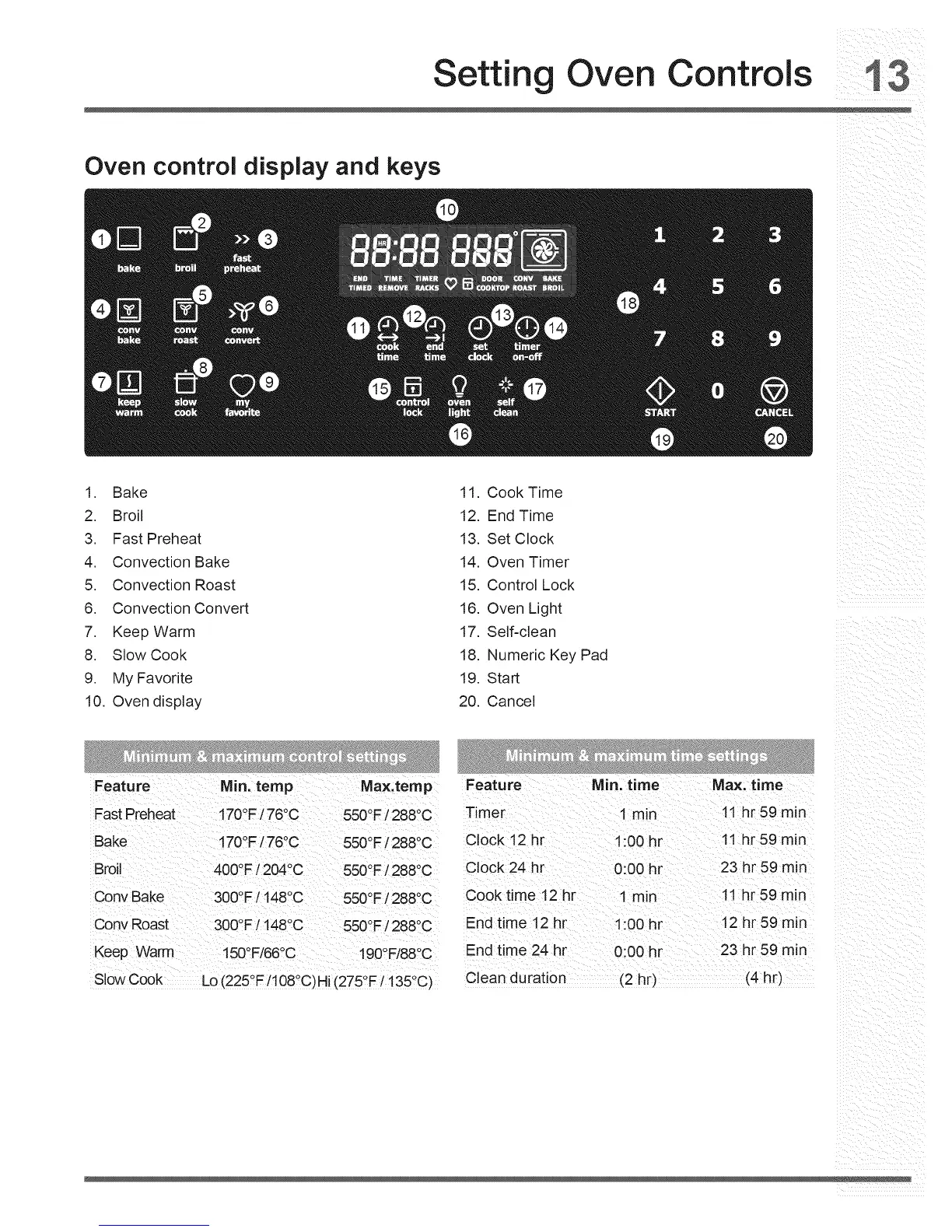 10. Oven display 20 Cancel