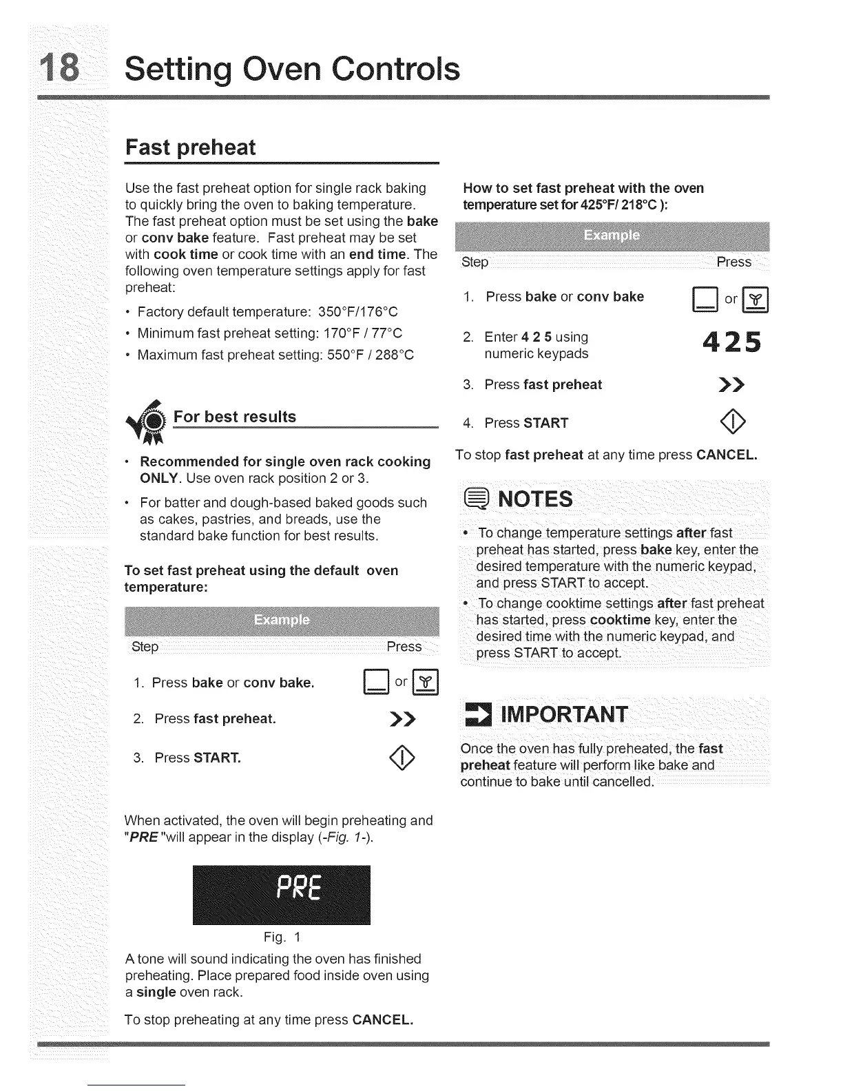 Use the fast preheat option for single rack baking How to set fast preheat with the oven