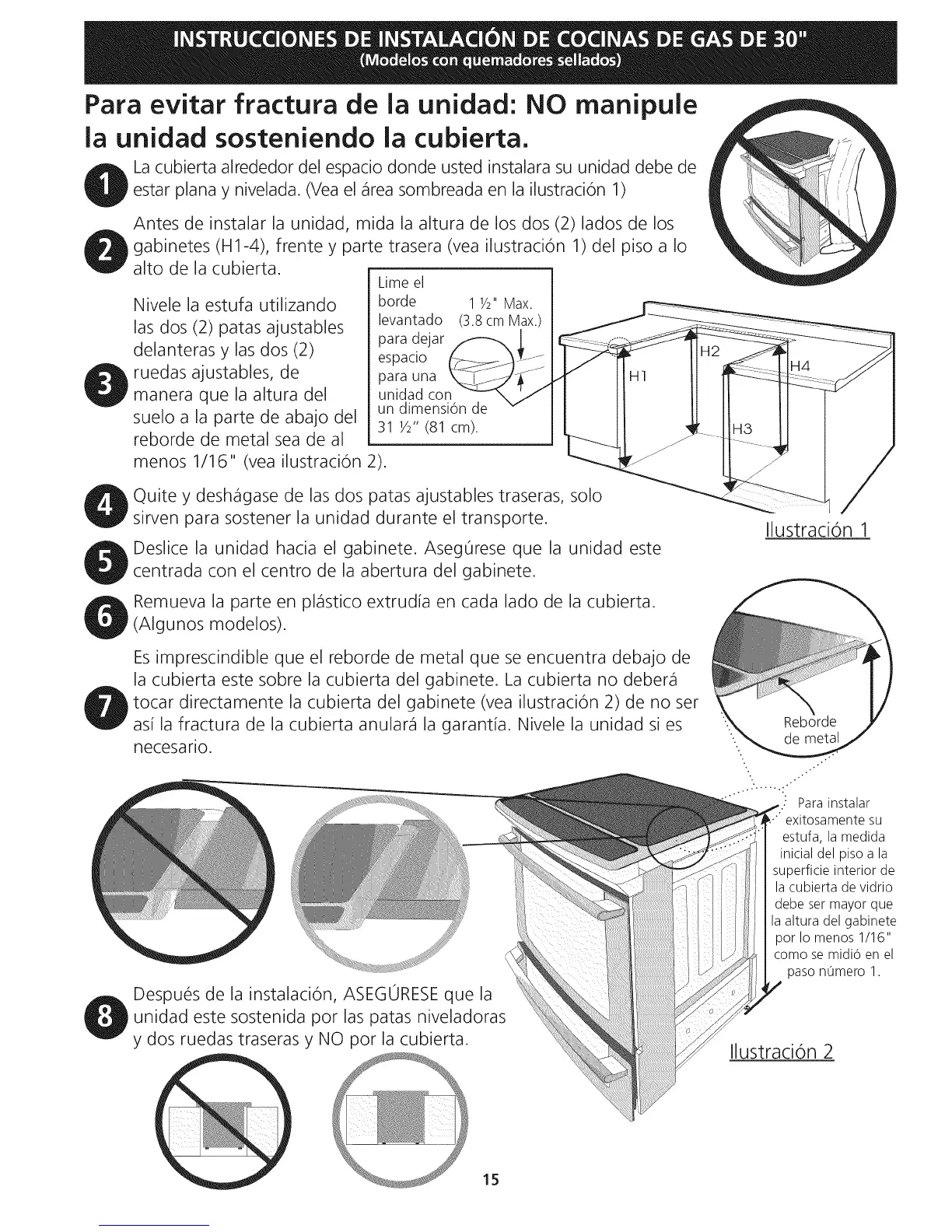 la cubierta este sobre la cubierta del gabinete. La cubierta no deber_q
