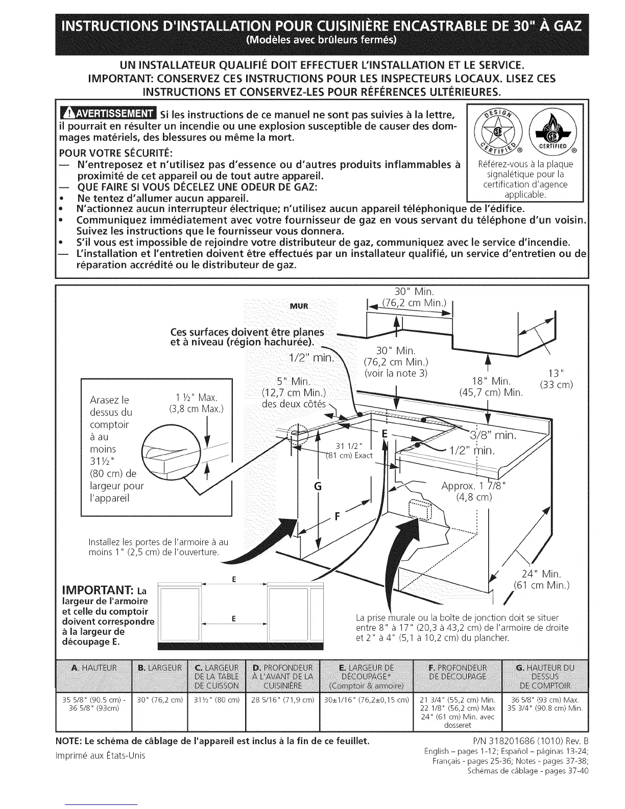 iMPORTANT: CONSERVEZ CES iNSTRUCTiONS POUR LES INSPECTEURS LOCAUX. USEZ CES
