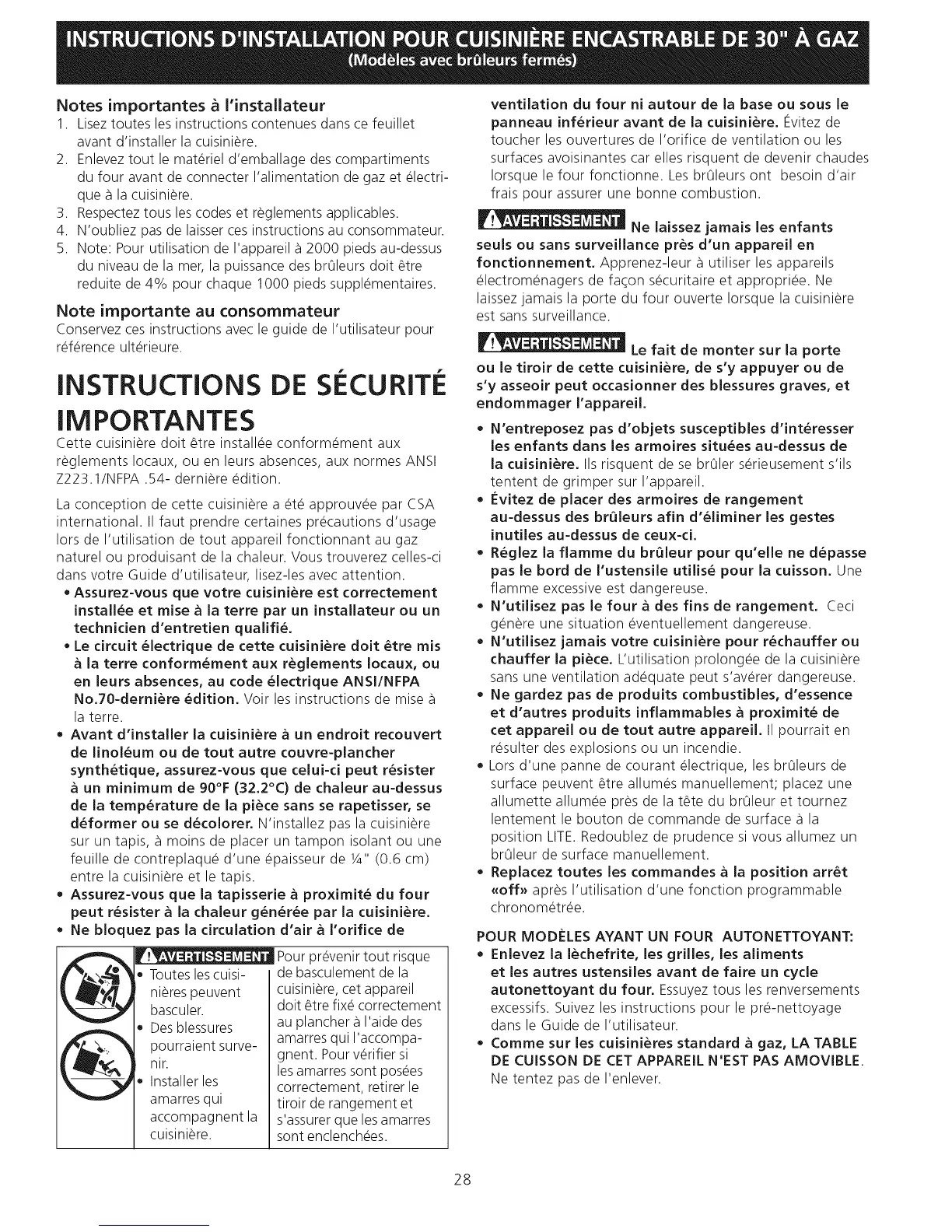 Cette cuisiniere dolt _tre installee conformement aux