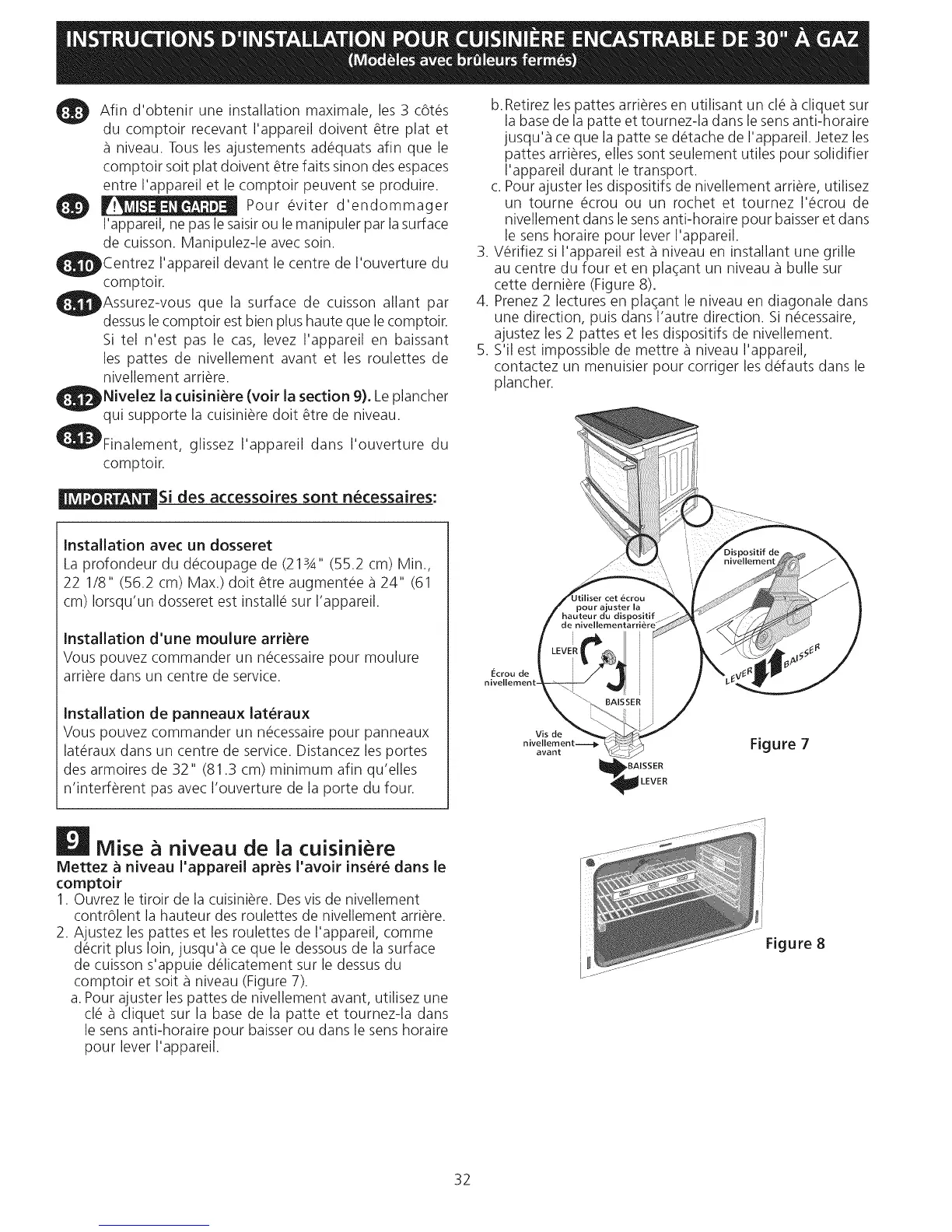 Mettez a niveau I'appareil apr_s I'avoir insere dans le