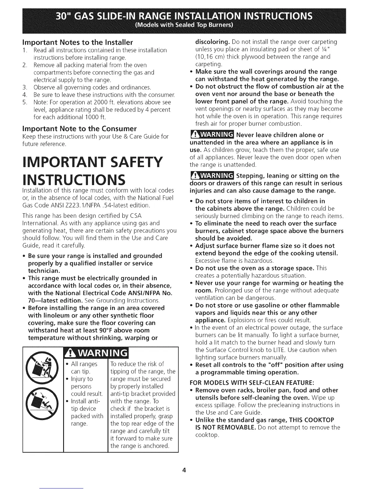 instructions before installing range.