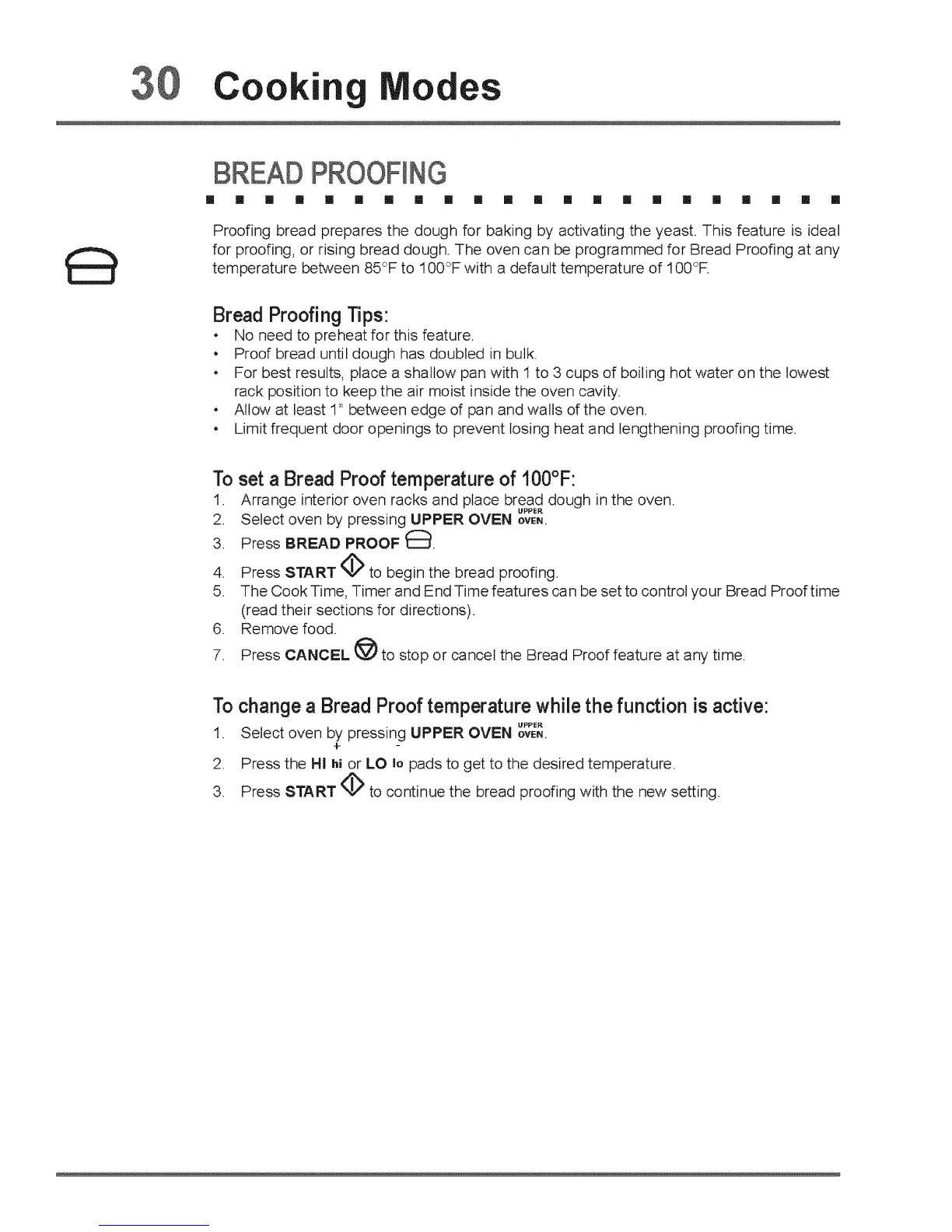 for proofing, or rising bread dough. The oven can be programmed for Bread Proofing at any