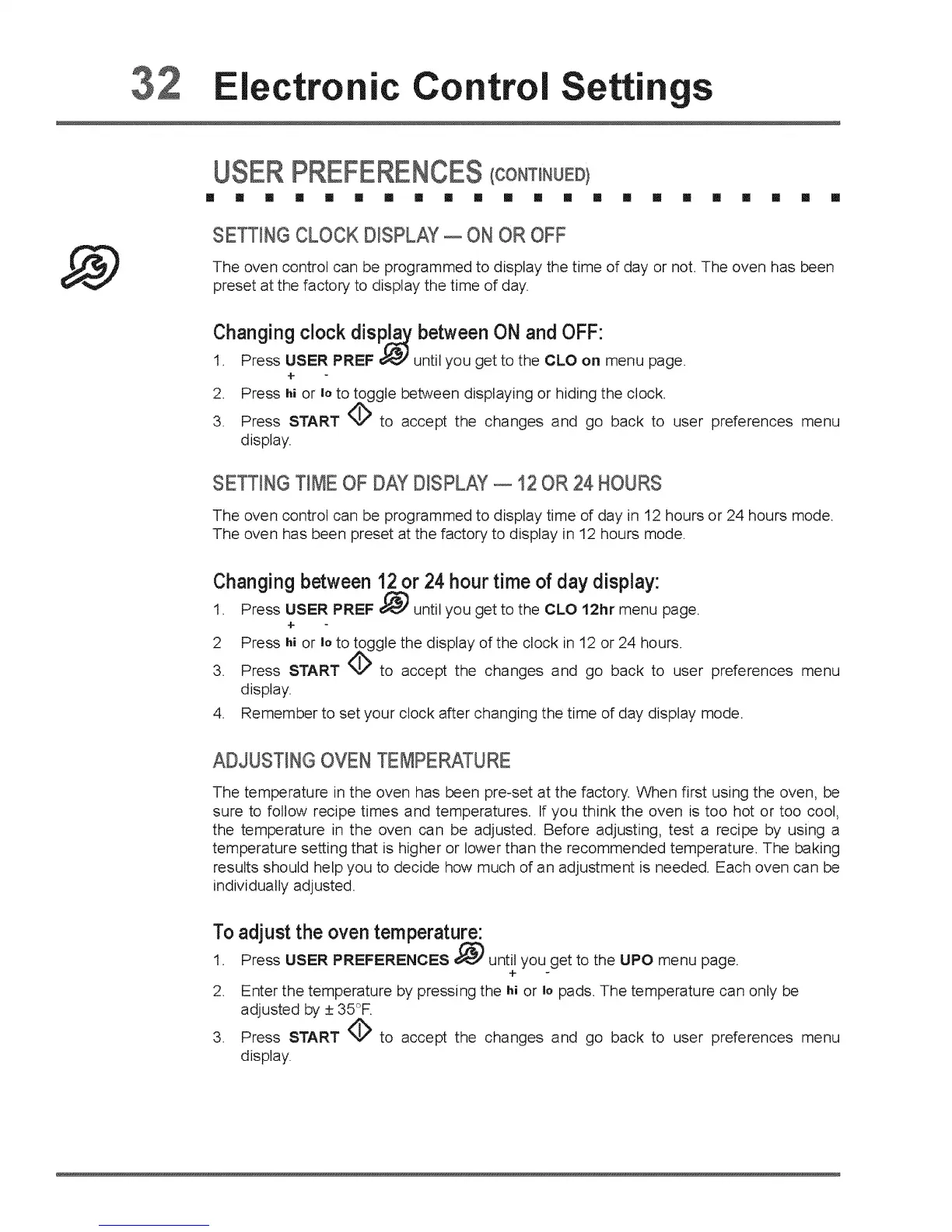 1 Press USER PREF _r-_' until you get to the CLO on menu page.